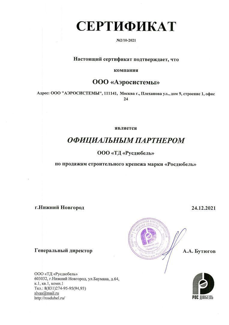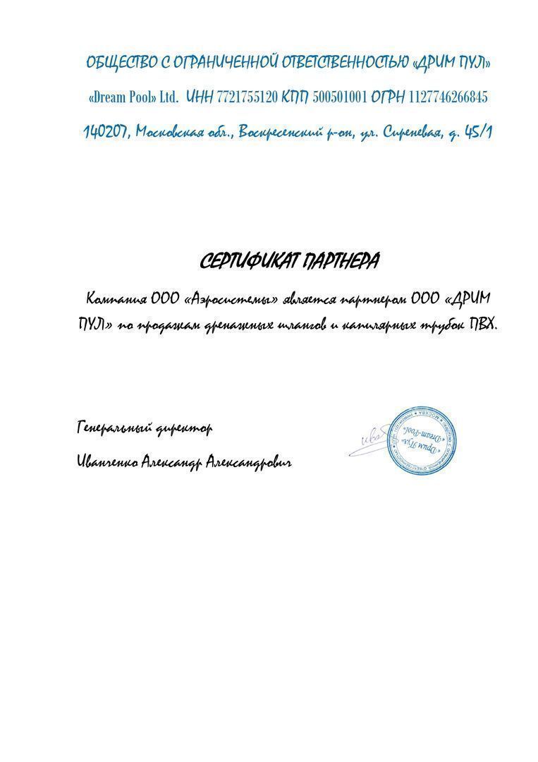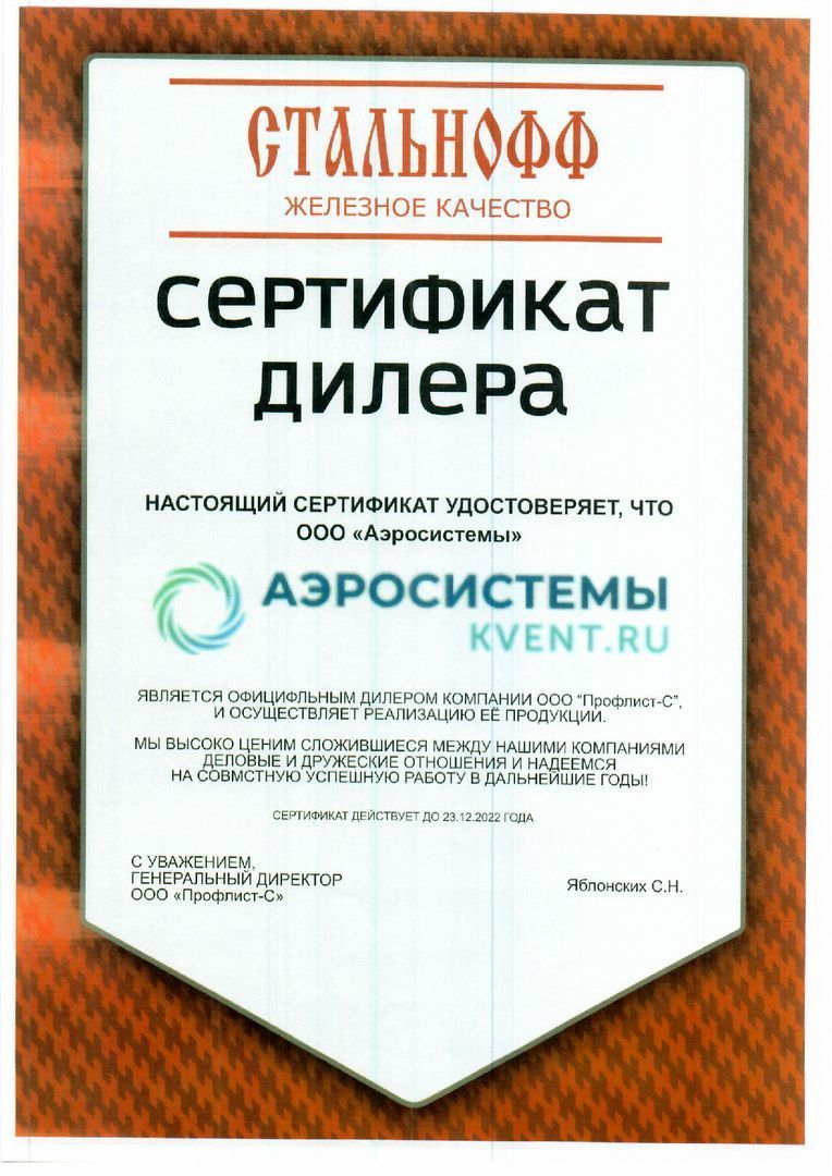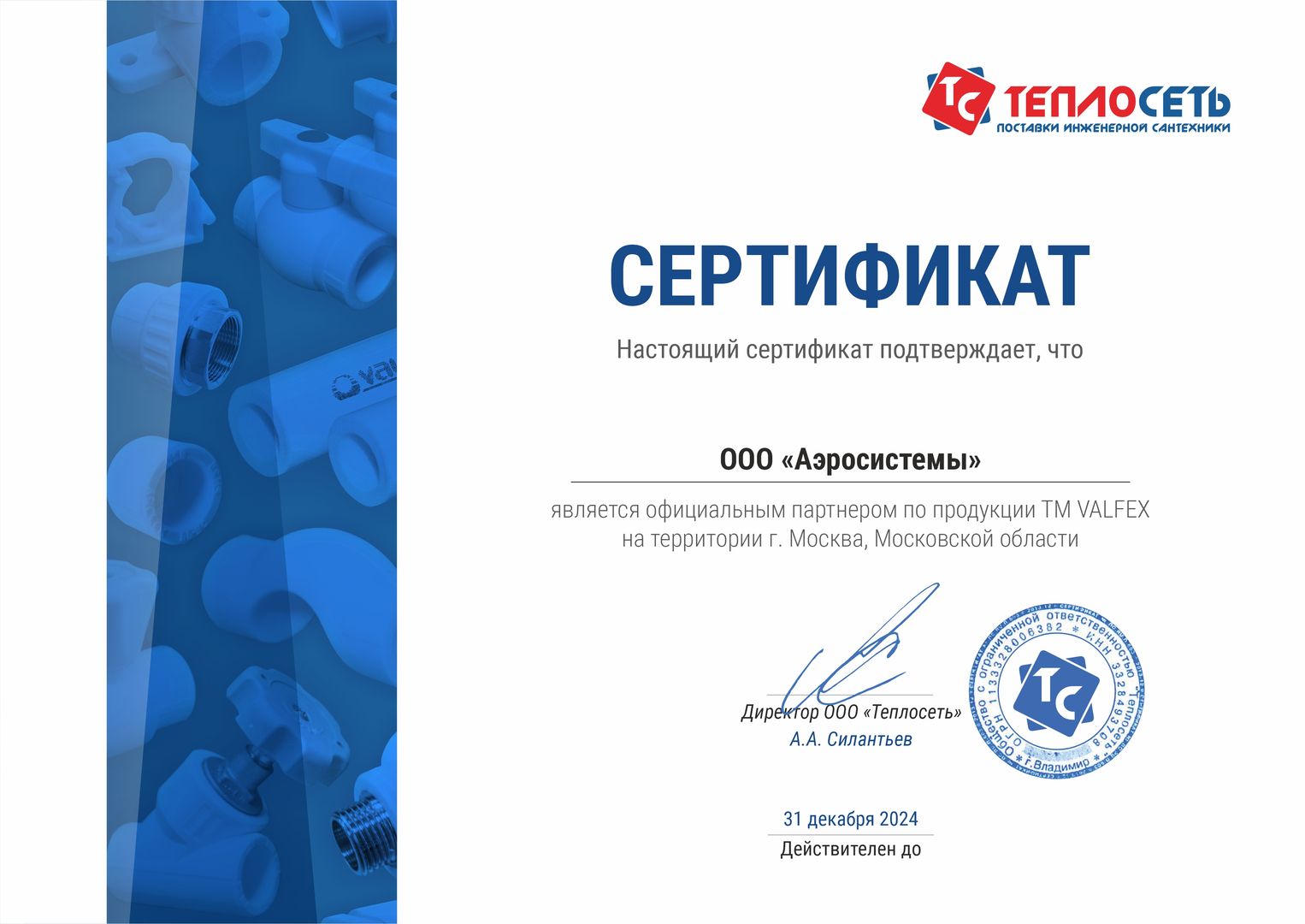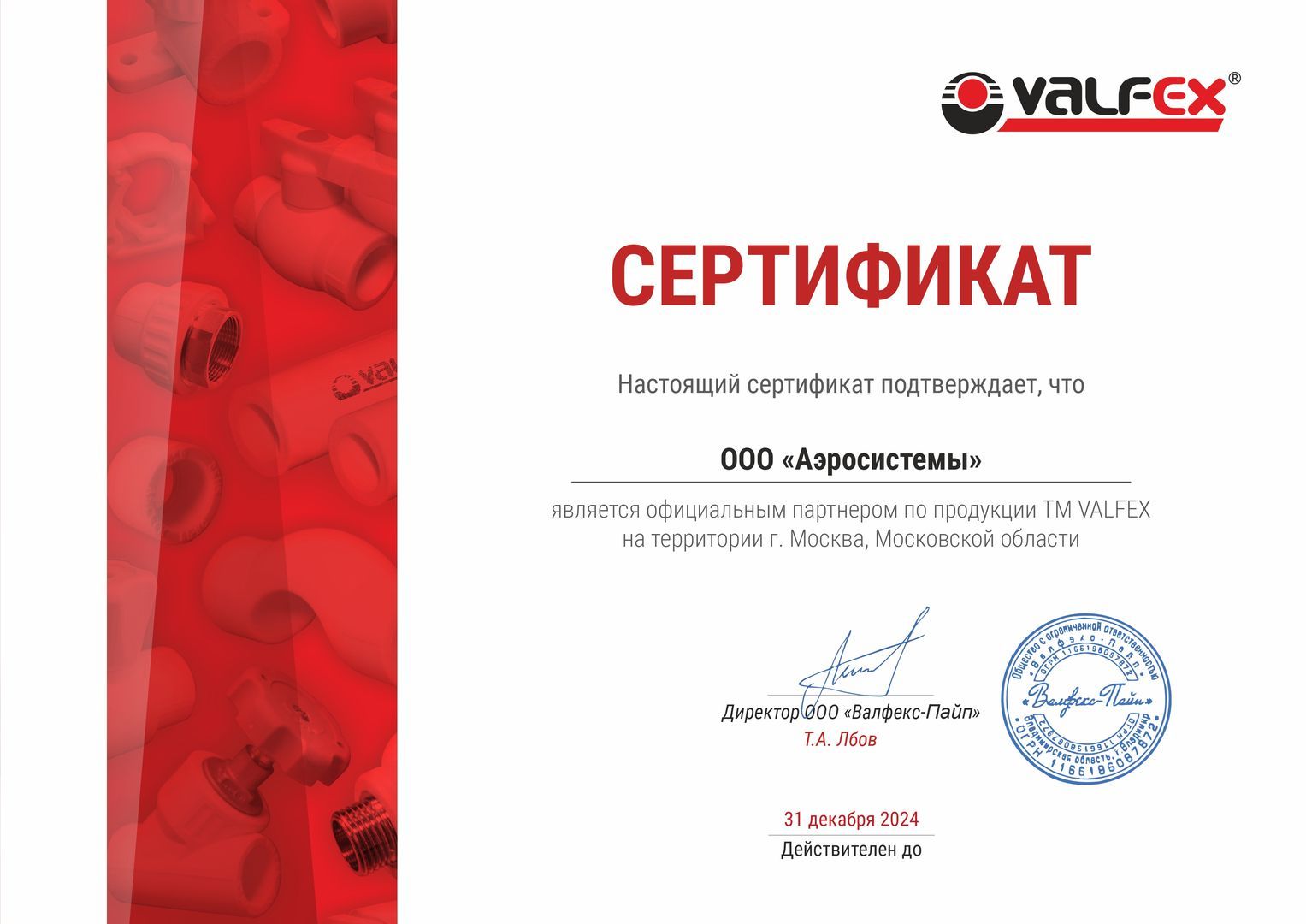Сертификат партнёра ООО "Валфекс-Пайп"