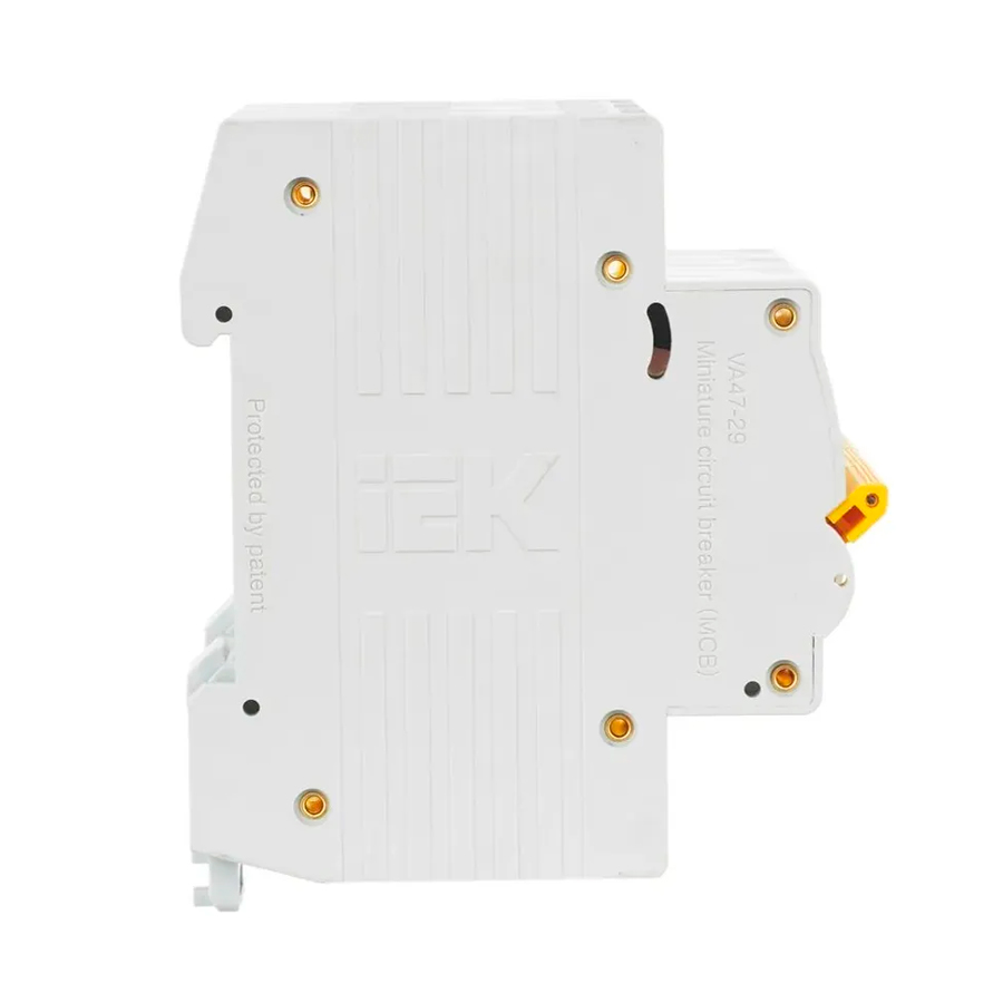 Автоматический выключатель ВА47-29 предназначен для защиты распределительных и групповых цепей, имеющих различную нагрузку. Автоматические выключатели ВА47-29 рекомендуются к применению в вводно-распределительных устройствах для жилых и общественных зданий. Автомат 63а имеет защиту, которая обеспечивается двумя расцепителями: электромагнитным (мгновенно срабатывает при значительном превышении тока) и тепловым (время срабатывания зависит от величины тока и составляет от нескольких секунд до нескольких часов). Характеристика срабатывания электромагнитного расцепителя «C» является стандартной и наиболее используемой, обычно применяется для защиты распределительных и групповых цепей со значительными пусковыми токами и смешанной нагрузкой (освещение, розетки и т.д.).