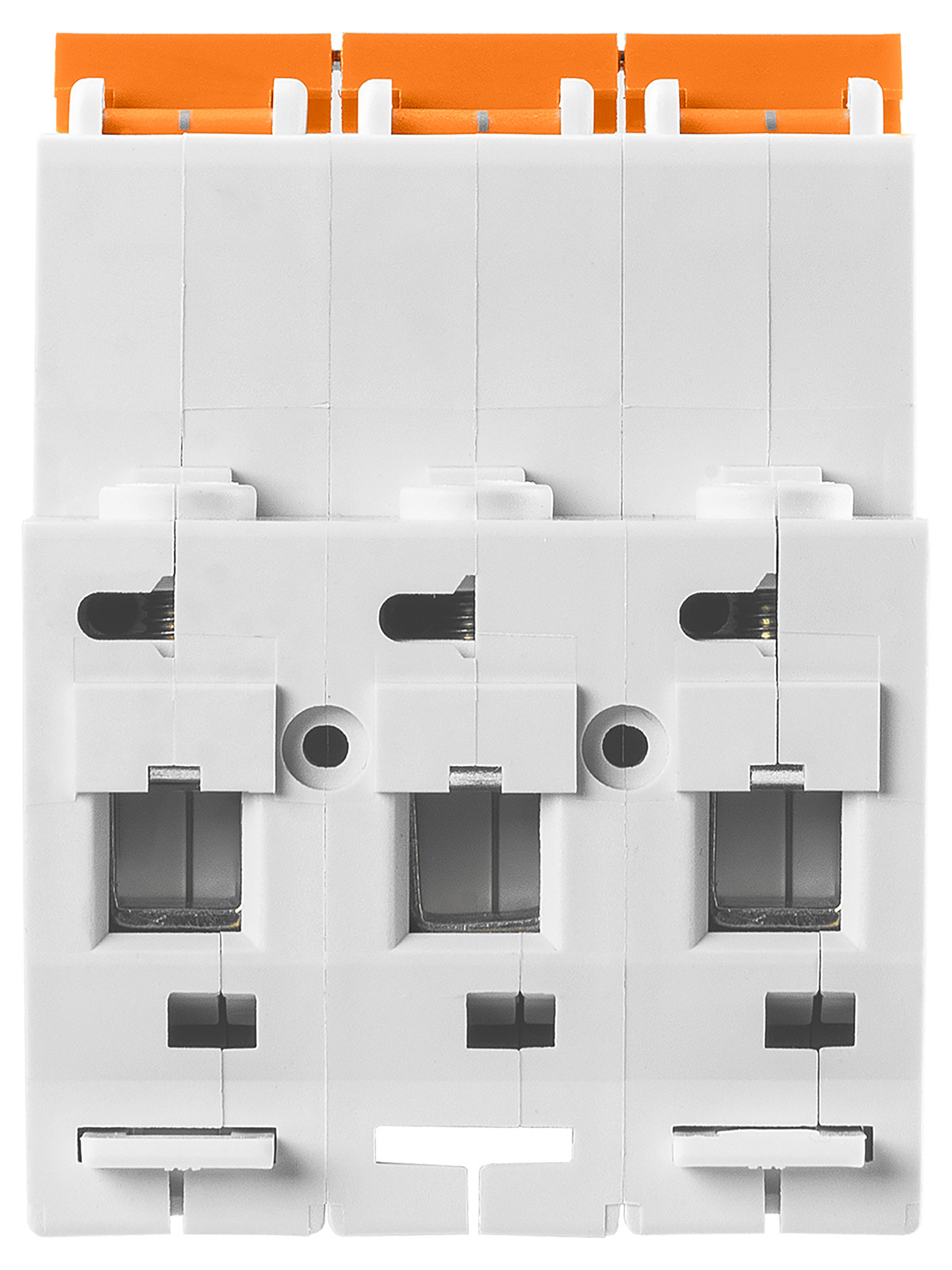 Автоматические выключатели серии ВА47-63 предназначены для защиты сетей от перегрузок и короткого замыкания и рассчитаны на номинальные токи от 6 и до 63 А при отключающей способности 4,5кА. Корпус и детали выключателей выполнены из пластика, не поддерживающего горение. Выключатели поставляются в одно-, двух- и трехполюсном исполнении. Характеристика кривой отключения – С. Автоматические выключатели ВА47-63 могут устанавливаться в любом положении без изменения их номинальных характеристик. Подвод питающей линии может производиться как через верхние, так и через нижние клеммы, без нарушения работоспособности.