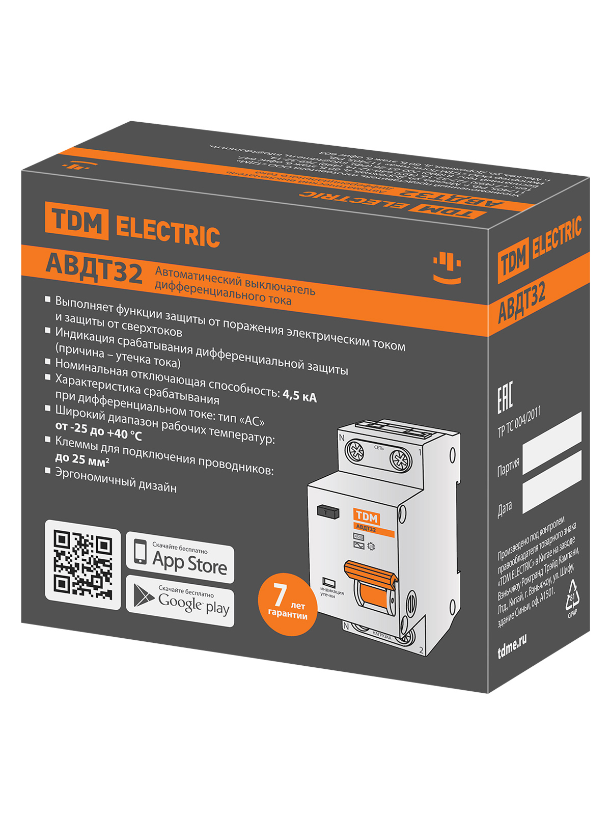 Автоматический выключатель дифференциального тока TDM АВДТ 32 SQ0202-0030 C16 предуготовлен для охраны человека от поражения электрическим током при повреждении изоляции электроустановок, для предотвращения пожаров в итоге протекания токов утраты на землю и для охраны от перегрузки и короткого замыкания. Рекомендуется для групповых линий, питаюхих розетки наружной утсановки, розеточных групп ванных и душевых помещений, цепей освещения подвалови гаражей.