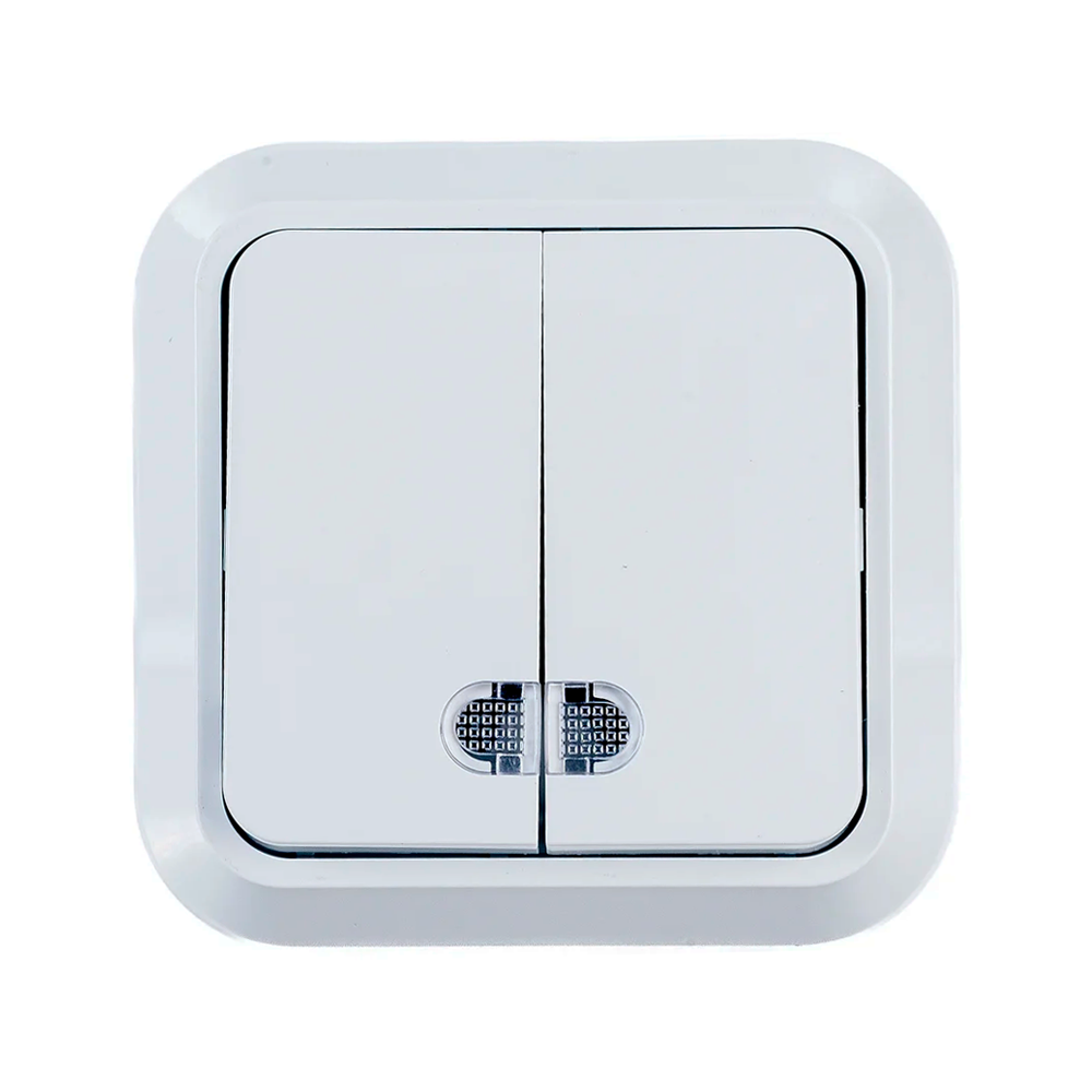 Makel SIVA USTU выключатель накладной 2 кл. с подсв. белый, выполнен из пластика высокого качества, прослужит долго и бесперебойно. Для удобства пользования на поверхности клавиш предусмотрены два индикатора. Устройство предназначено для управления работой различных осветительных приборов, работающих от электросети.