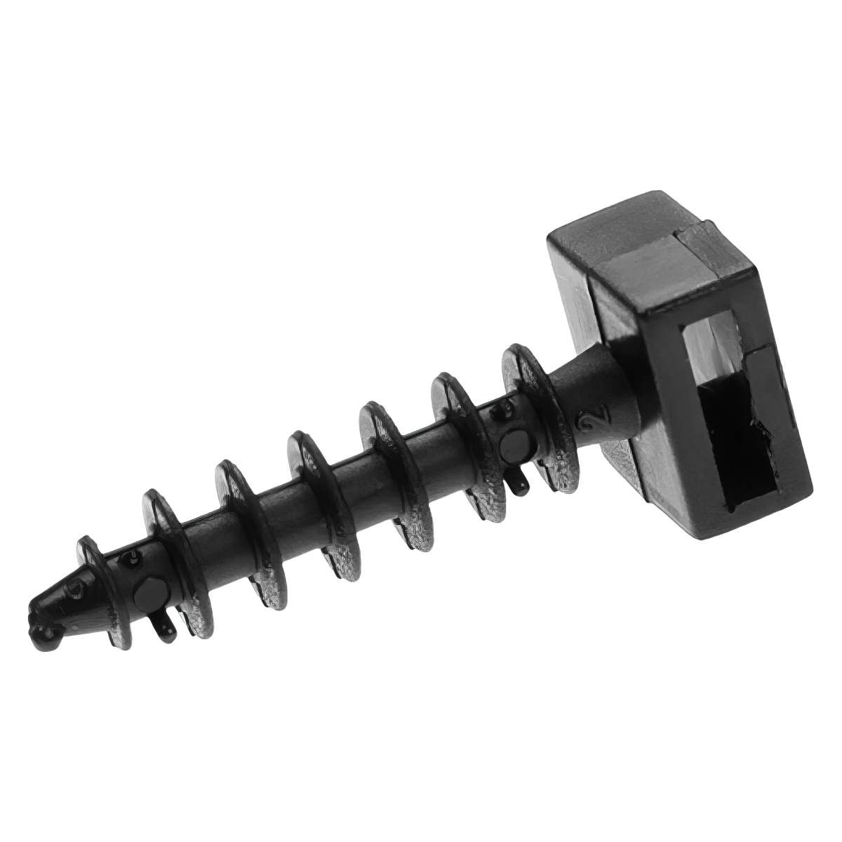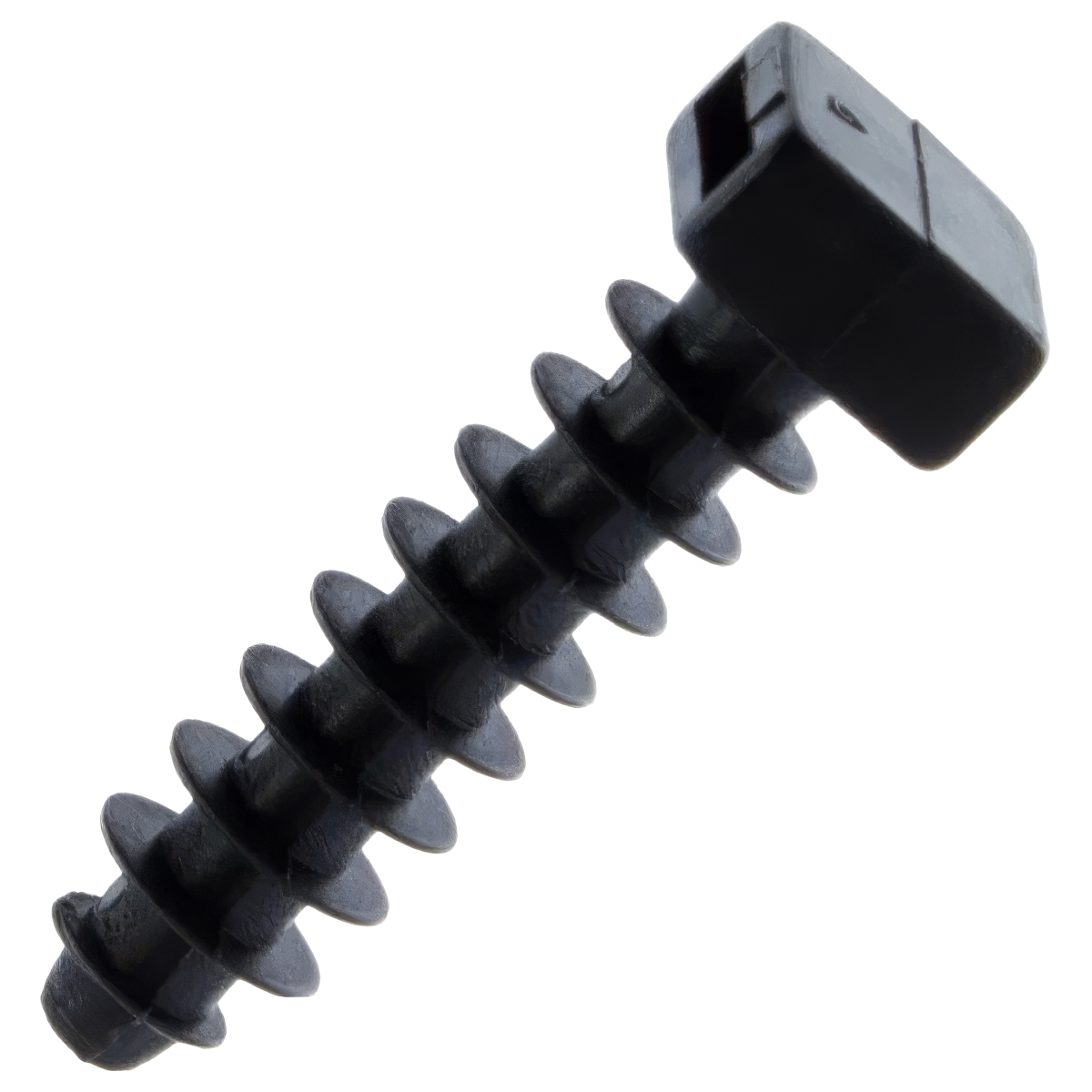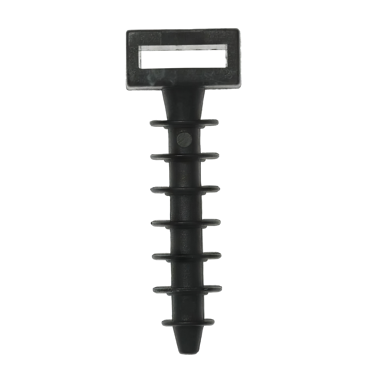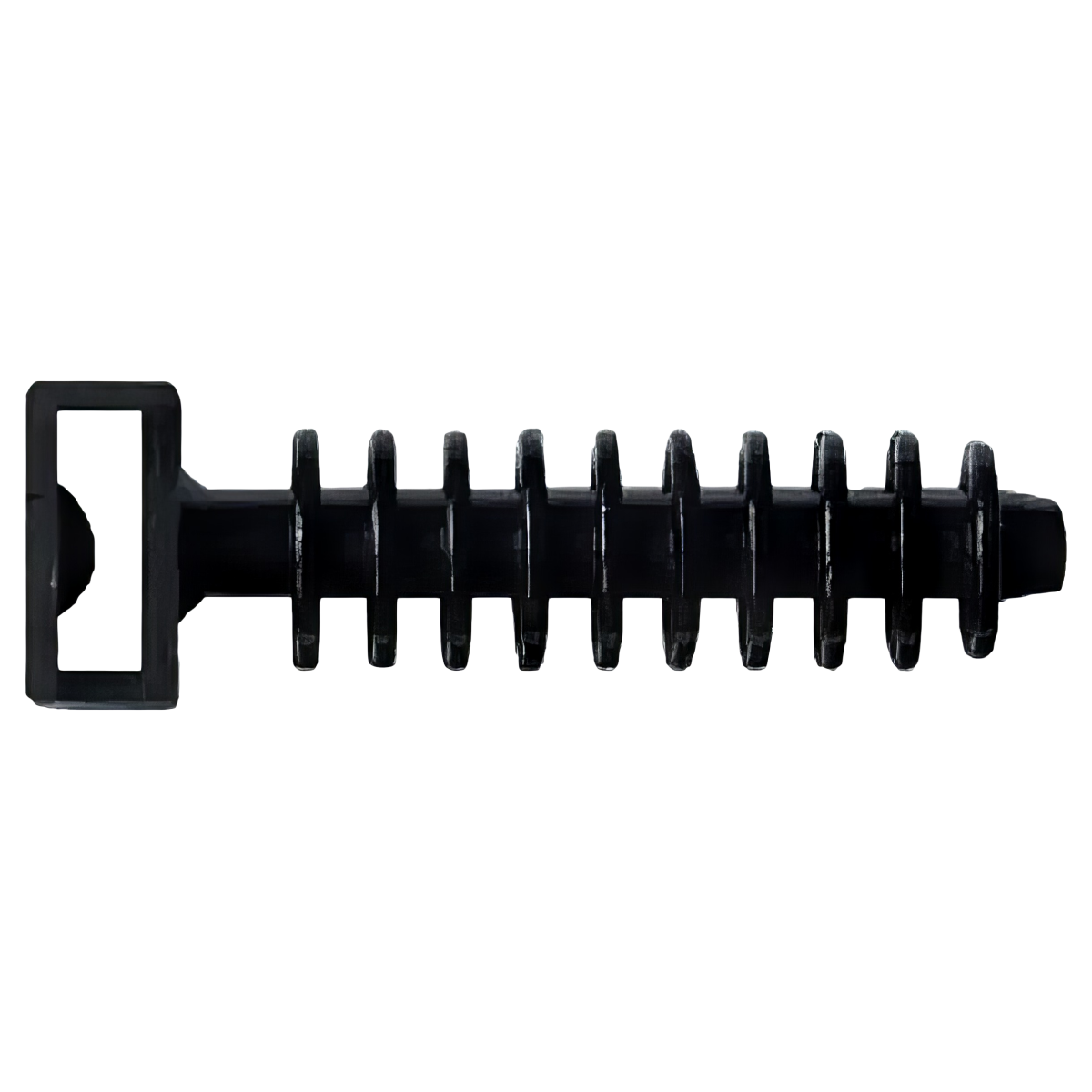 Дюбель под хомут-стяжку применяется для крепления хомутов к бетонным, деревянным и кирпичным поверхностям в процессе прокладки кабелей и электропроводки. Рабочая часть дюбеля выполнена в виде пластин, которые при забивании сминаются определенным образом и препятствуют вытаскиванию дюбеля. Дюбель изготовлен из нейлона.