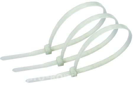 Используются при проведении электромонтажных работ, применяют для стягивания нескольких проводов в один пучок, а так же для других целей. Изготовлены из полимерного материала устойчивого к ультрафиолету и перепадам температуры. Используются при температуре от -35 ...+85.Цвет белый. Фиксируются замком с защёлкой.