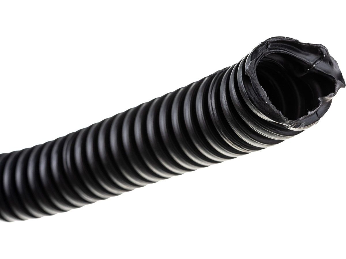 Труба гофрированная из ПНД с зондом, черная Ø 25 мм, бухта 50м из полиэтилена низкого давления отлично подходит для защиты изолированных проводов и кабелей от механических повреждений и агрессивного воздействия окружающей среды при прокладке сложных систем и трасс. Применяется для скрытой и открытой прокладки в несущих и ограждающих конструкциях из несгораемых материалов жилых, административных и производственных зданий и сооружений.
