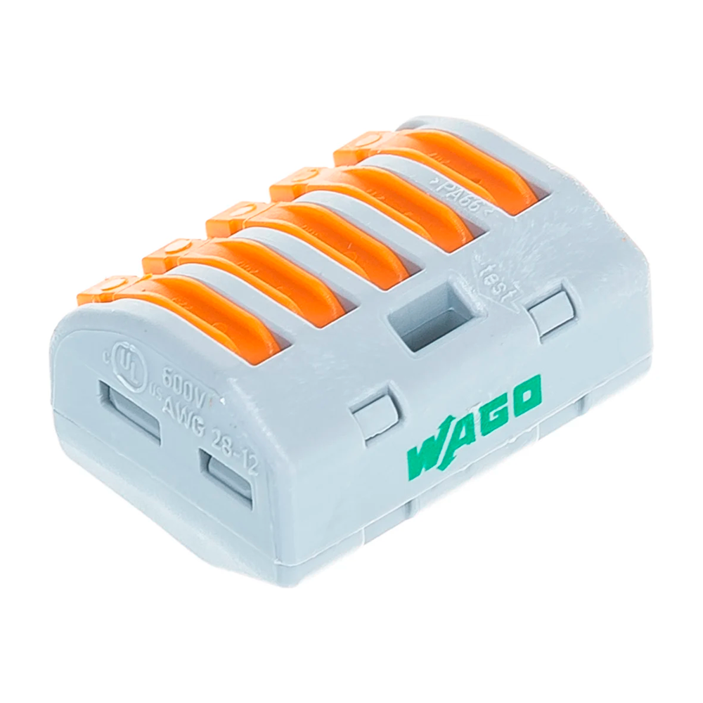 Соединительная клемма WAGO 222-415 применяется для подключения проводников в распределительной коробке, подключения светильников, индивидуального подключения низковольтных осветительных систем, соединения предустановленных элементов, например, в мобильных домиках, для подключения жалюзи, ставней, дверных приводов, переговорных устройств, насосов, громкоговорителей и многого другого.