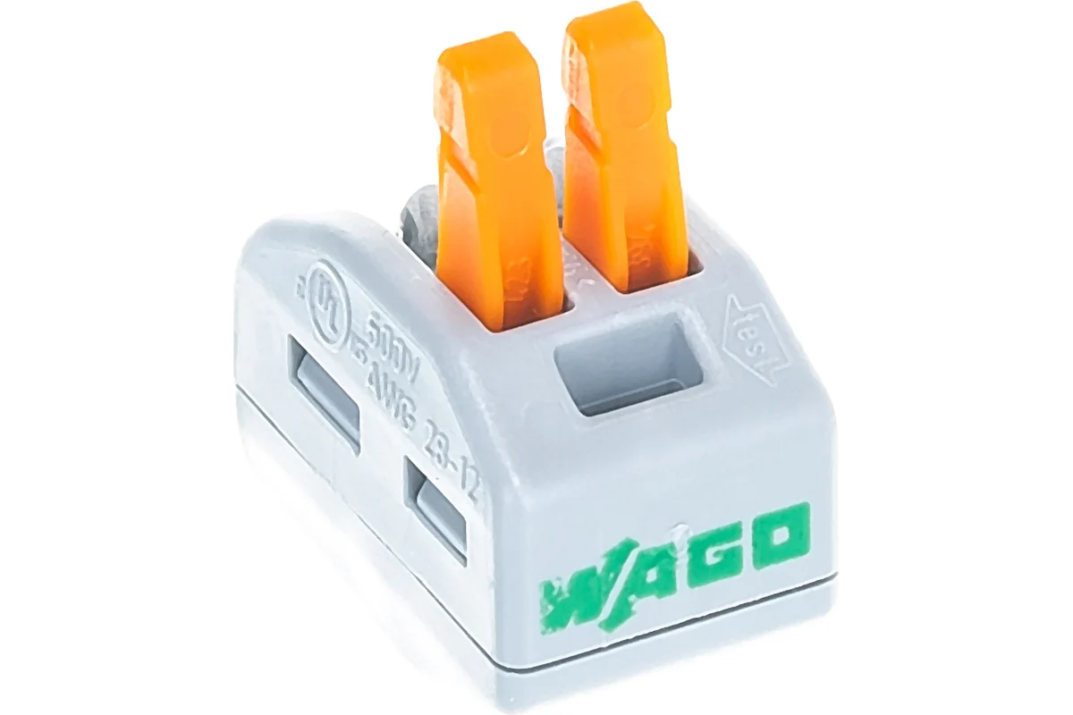 Клемма WAGO 222-412 применяется для подключения проводников в распределительной коробке, подключения светильников, индивидуального подключения низковольтных осветительных систем, соединения предустановленных элементов, например, в мобильных домиках, для подключения жалюзи, ставней, дверных приводов, переговорных устройств, насосов, громкоговорителей и многого другого.