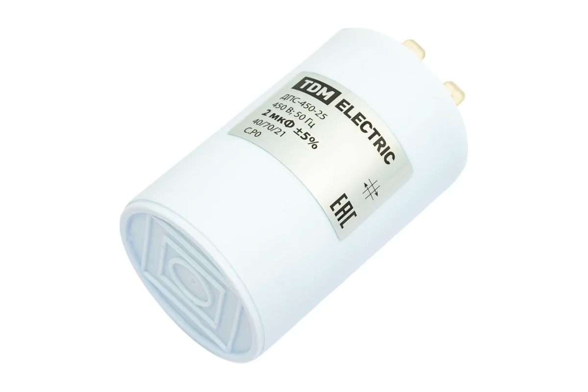 Пусковой конденсатор – предназначен для запуска электродвигателя. Он служит для поддержания тока, на вспомогательной обмотке двигателя и переходит в состояние отключения, когда двигатель начал работать.