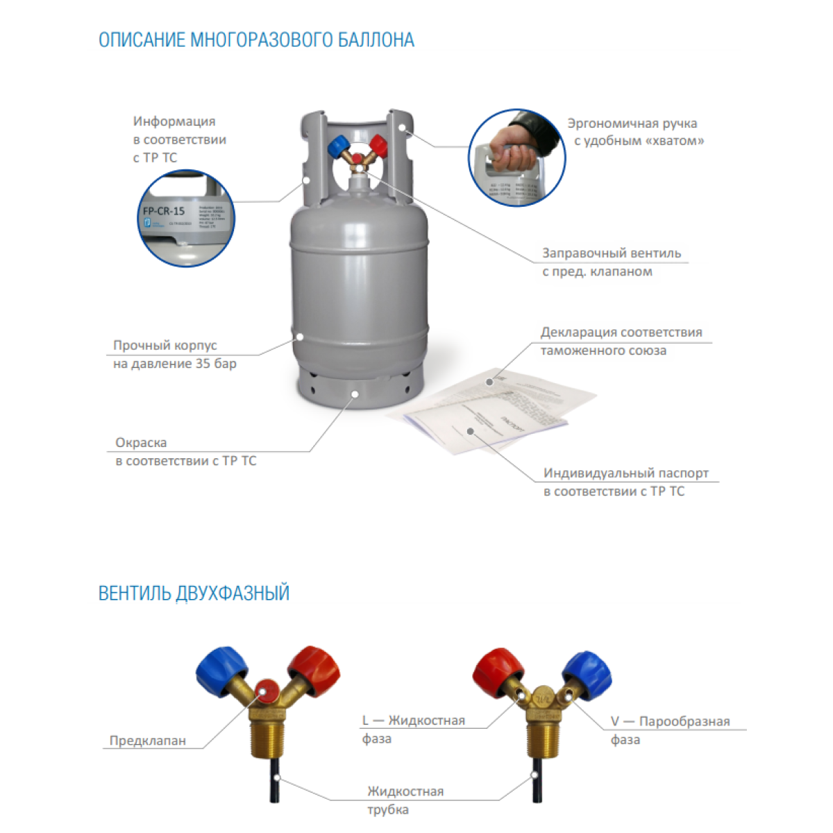 Баллоны для хладагентов никогда не заправляются жидкой фазой полностью. В верхней части баллона всегда оставляют газовую подушку для компенсации температурных колебаний жидкого объема и предотвращения опасности разрушения баллона.
