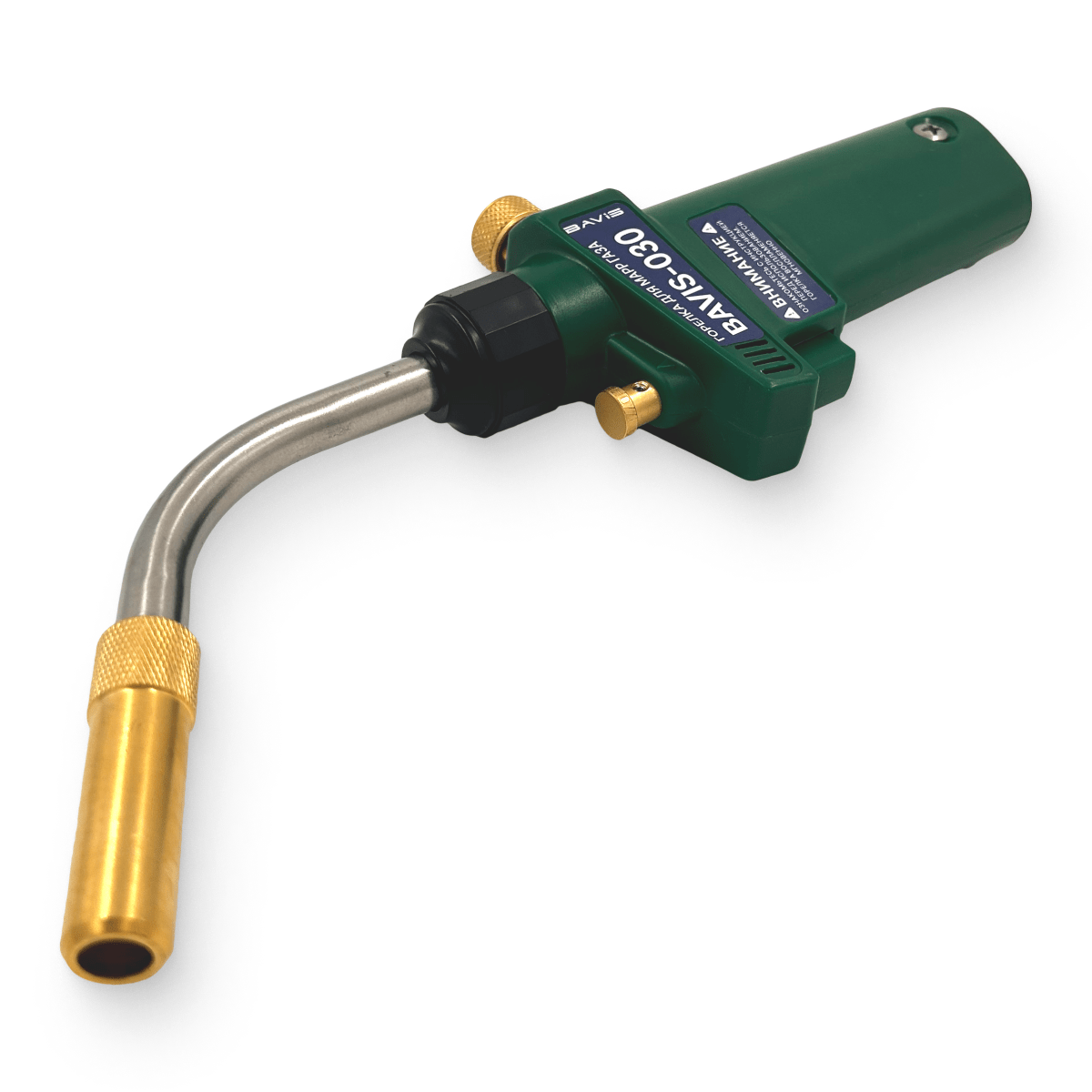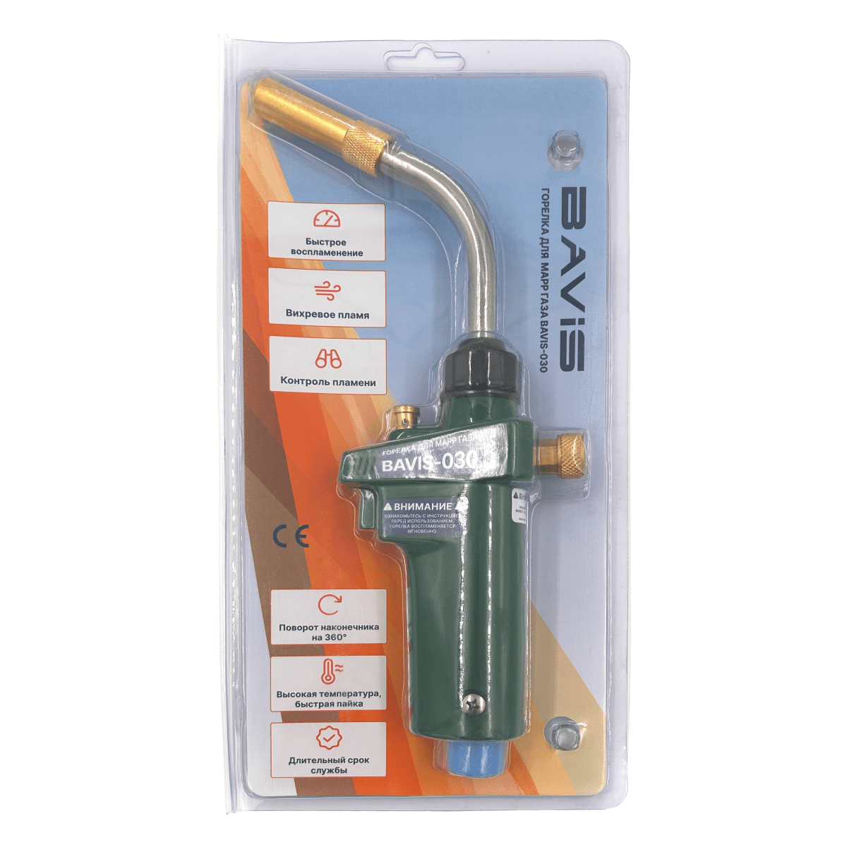 Газовая горелка для MAPP газа с пьезоподжигом BAVIS-030 предназначена для твердой и мягкой пайки. Вихревое пламя с регулировкой. Высокая температура пламени с быстрым прогреванием. Безопасная и надежная горелка, 4 блокировки курка. Наконечник поворачивается на 360 °, благодаря чему горелка подходит для работы в сложных условиях.