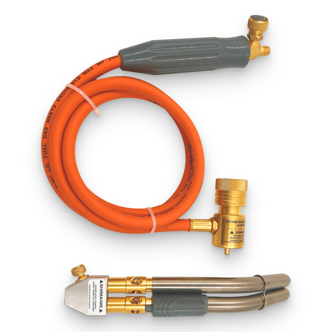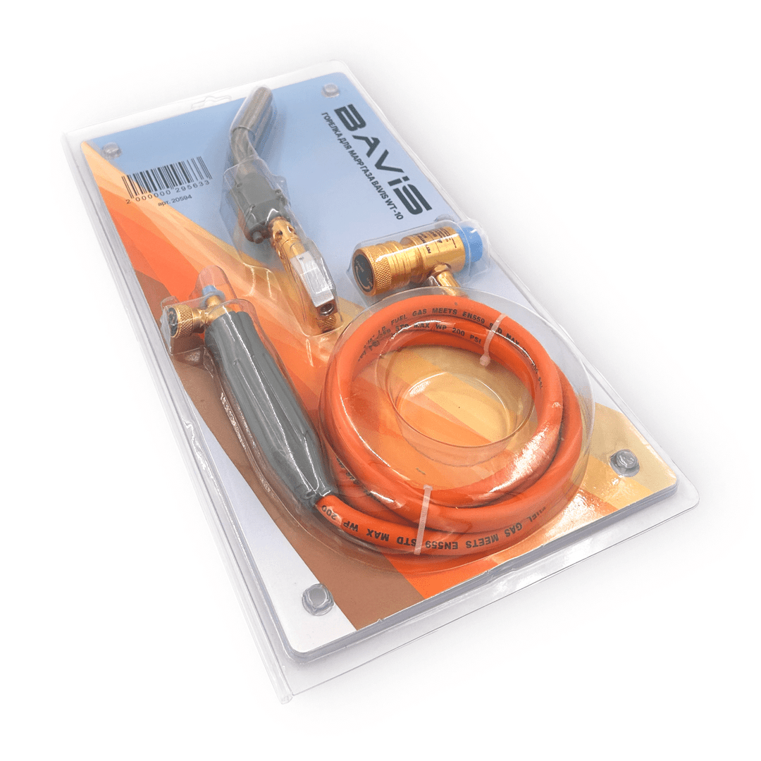 Горелка для MAPP газа BAVIS-WT-10 для пайки со шлангом 1,5 метра, пьезоподжигом, двумя соплами.