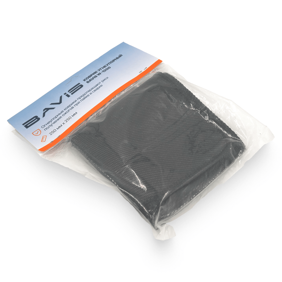 Огнеупорный коврик BAVIS W-1200 предназначен для защиты различных поверхностей от прямого воздействия пламени температурой до 1200 °С. Размер коврика 250 х 250 мм.