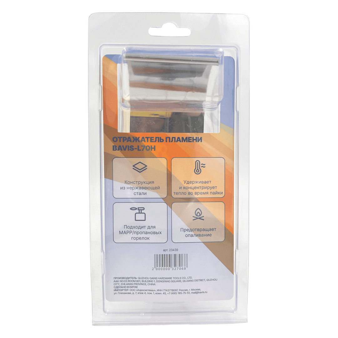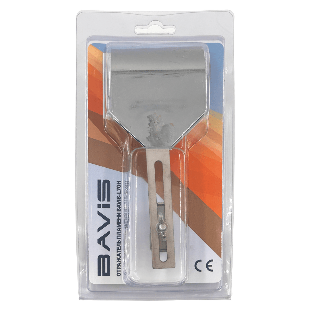 Отражатель пламени BAVIS L-70H из нержавеющей стали для удержания и концентрирования жара во время пайки. Защищает окружающую среду и предотвращает обжиг стен. Подходит для МАПП / пропановых горелок.