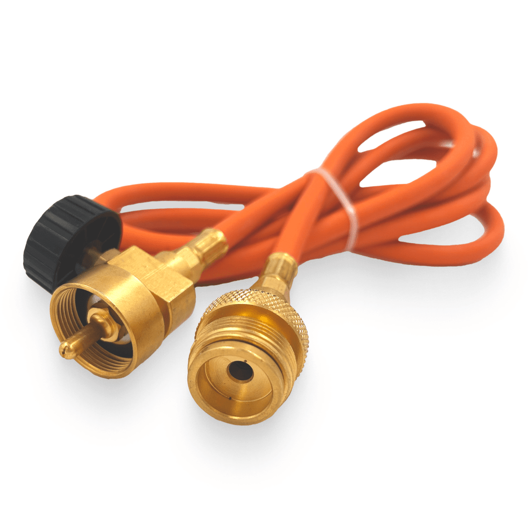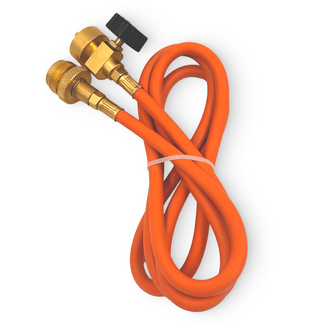 Длина шланга 1,5 м. С регулировкой подачи газа. Присоединение к горелке стандарт CGA 600. В комплекте крючок для удобства использования при присоединении баллона.