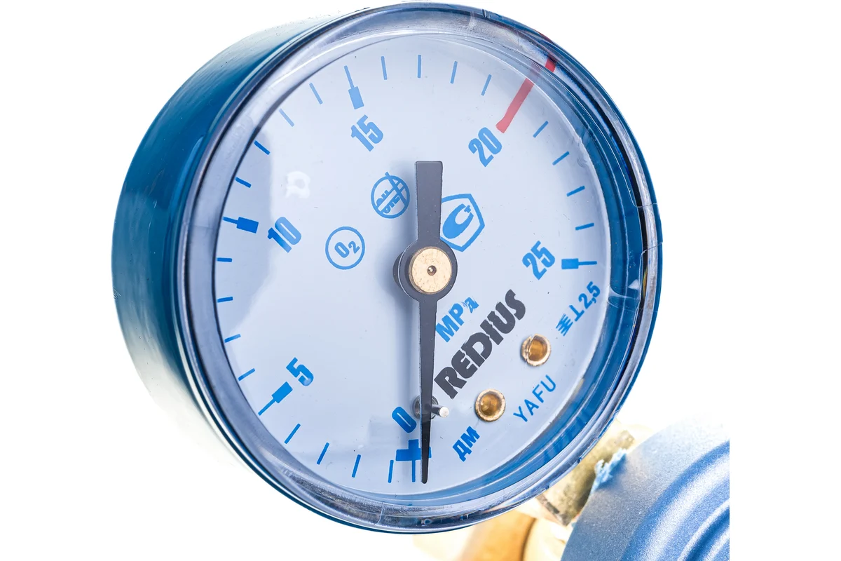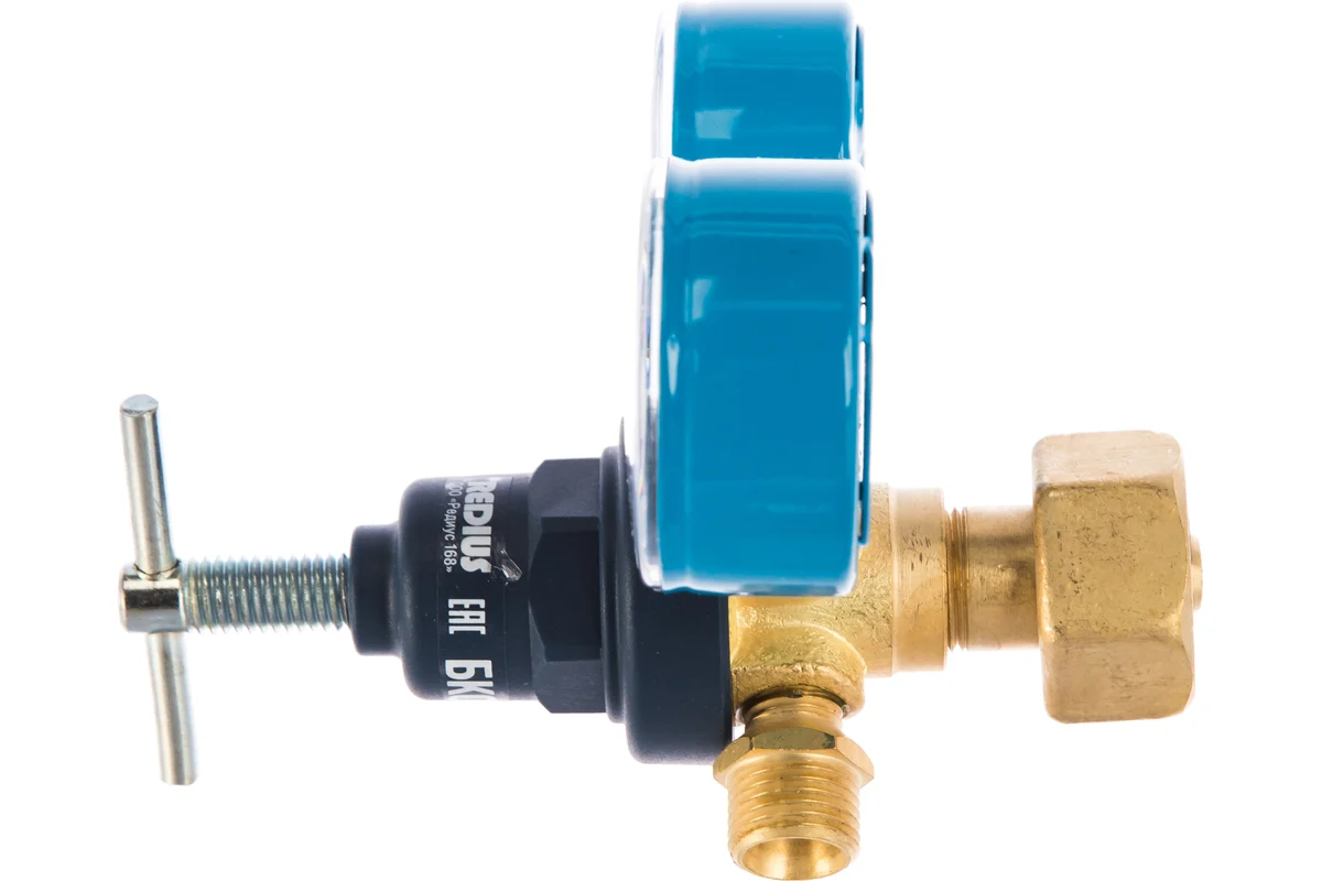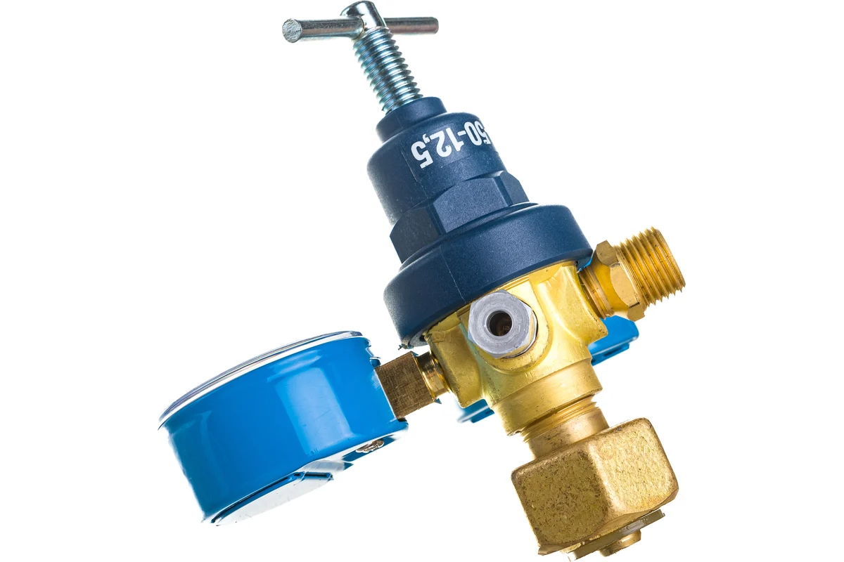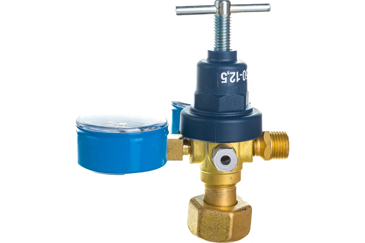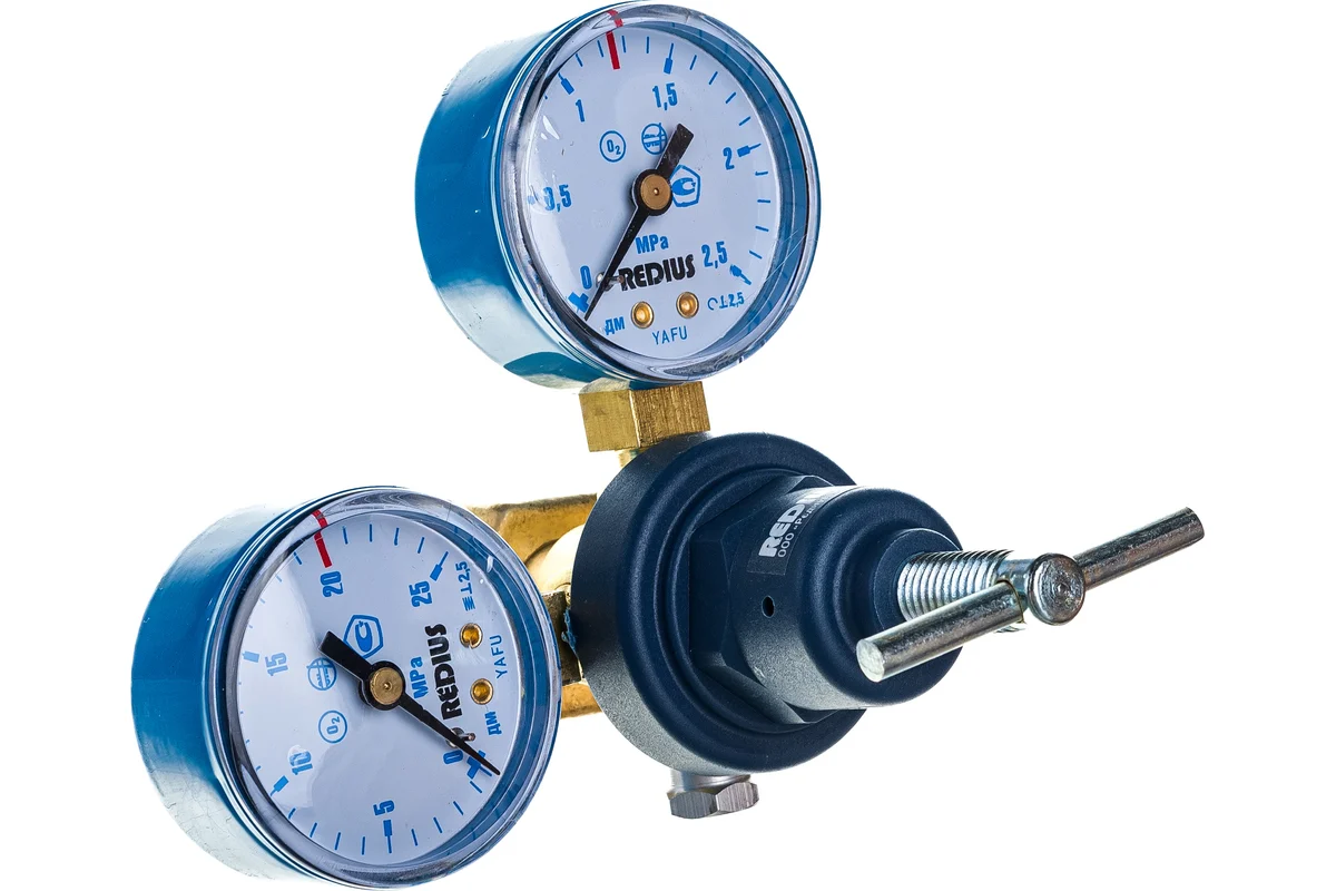 Малогабаритный кислородный редуктор выполнен по осевой схеме, за счет чего обладает компактными размерами при сохранении всех рабочих параметров на уровне крупногабаритных редукторов. Редуктор предназначен для понижения и регулирования давления газа (кислорода), поступающего из баллона, и автоматического поддержания постоянного рабочего давления газа при питании постов и установок газовой сварки, резки, пайки и других технологических процессов.