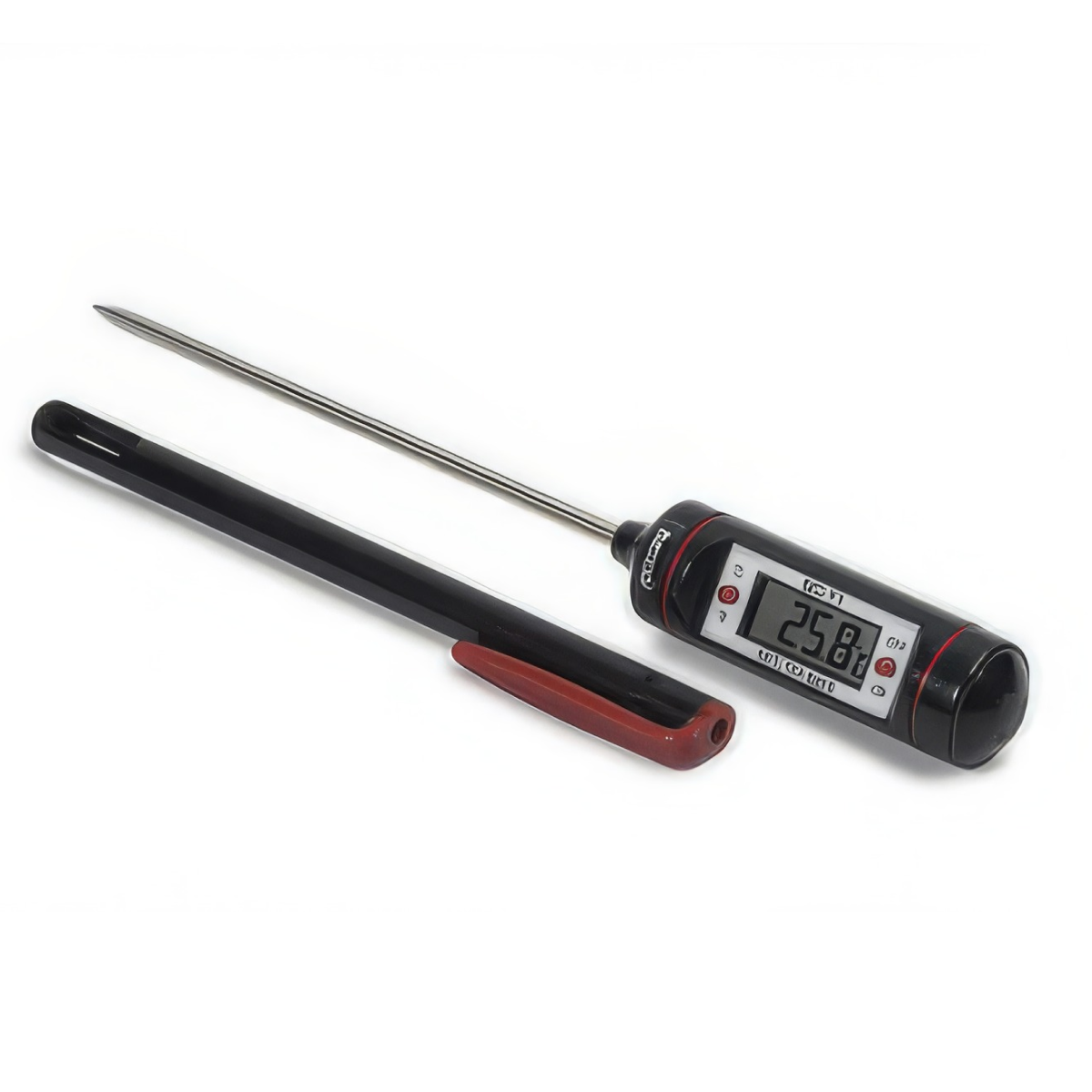 Электронный штыревой термометр Becool BC-T1 предназначен для измерения температуры твёрдых, сыпучих, жидких и газообразных неагрессивных сред (процессы обработки пищи, хранение продуктов, пивоварение, замораживание, лабораторные задачи, фармацевтика). Термометр BC-T1 выполнен в виде рукоятки с жидкокристаллическим дисплеем к которой крепится щуп. На жидкокристаллическом дисплее отображается измеряемая температура, а также значения максимальной и минимальной измеренной температуры. Электронный термометр BC-T1 имеет защитный чехол для температурного щупа, отверстие в защитном чехле предназначено для измерения температуры воздуха. Becool BC-T1 удобен в использовании, показания высококонтрастного жидкокристаллического дисплея легко читаются, защитный чехол температурного щупа имеет клипсу для ношения в кармане.