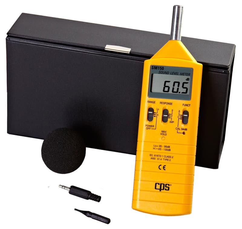 Электронный шумомер CPS SM150 предназначен для измерения уровня шума в жилых и производственных помещениях, а также вне помещений и проведения частотного анализа шума в диапазонах от 35 до 130 дБ. CPS SM150 имеет большой жидкокристаллический дисплей, функцию фиксации на дисплее максимального значения, индикатор выхода из диапазона измерения, установку пикового и среднего значений.