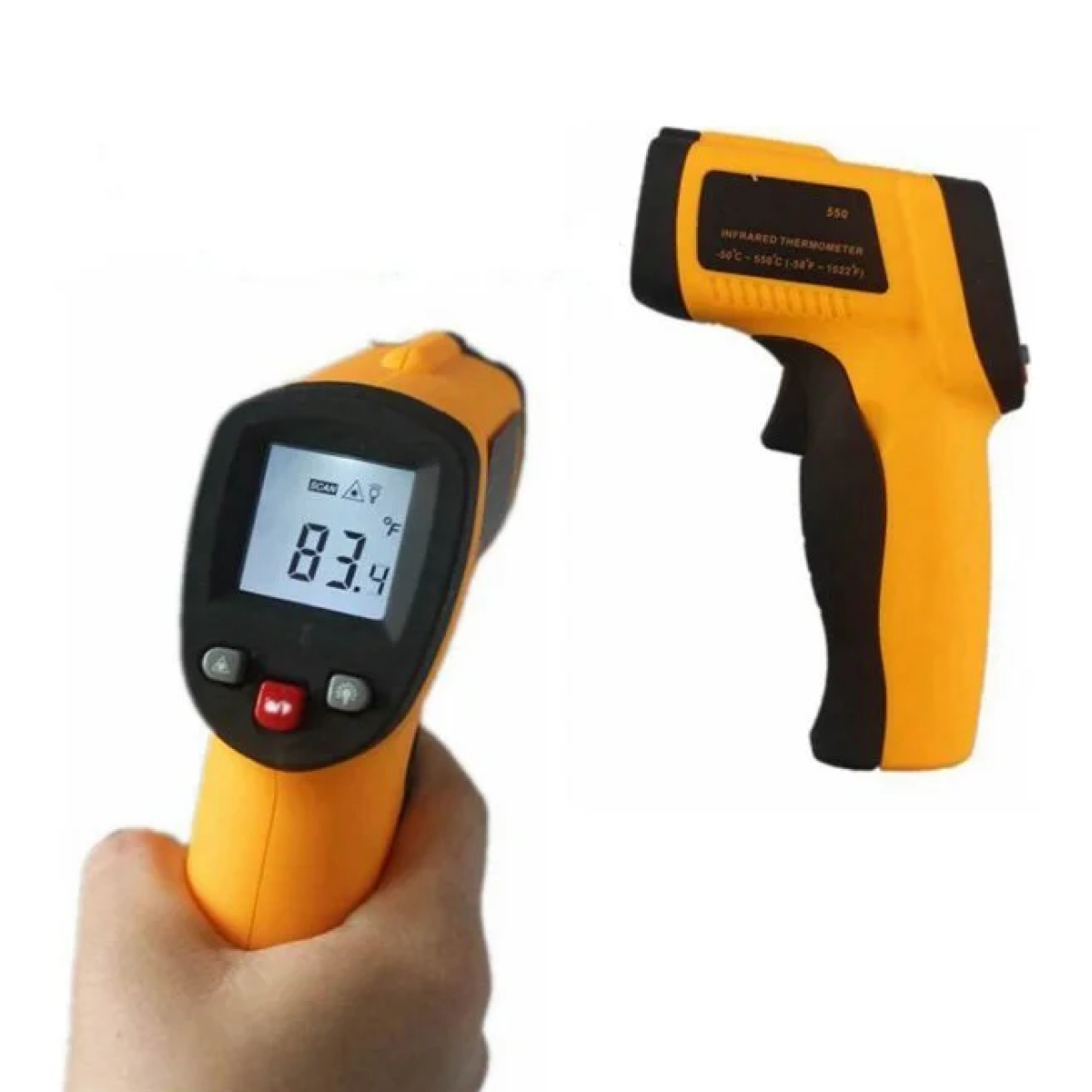 Инфракрасный термометр WH550 – новейший, максимально точный, прибор. Предназначен для обнаружения ИК излучения, исходящего от различных объектов. Пирометр фокусирует ИК лучи на датчик с помощью линз. Датчик переводит температуру на поверхности объекта в электрический сигнал, и микроконтроллер вычисляет температуру поверхности измеряемого объекта.