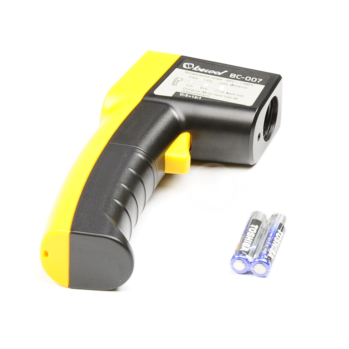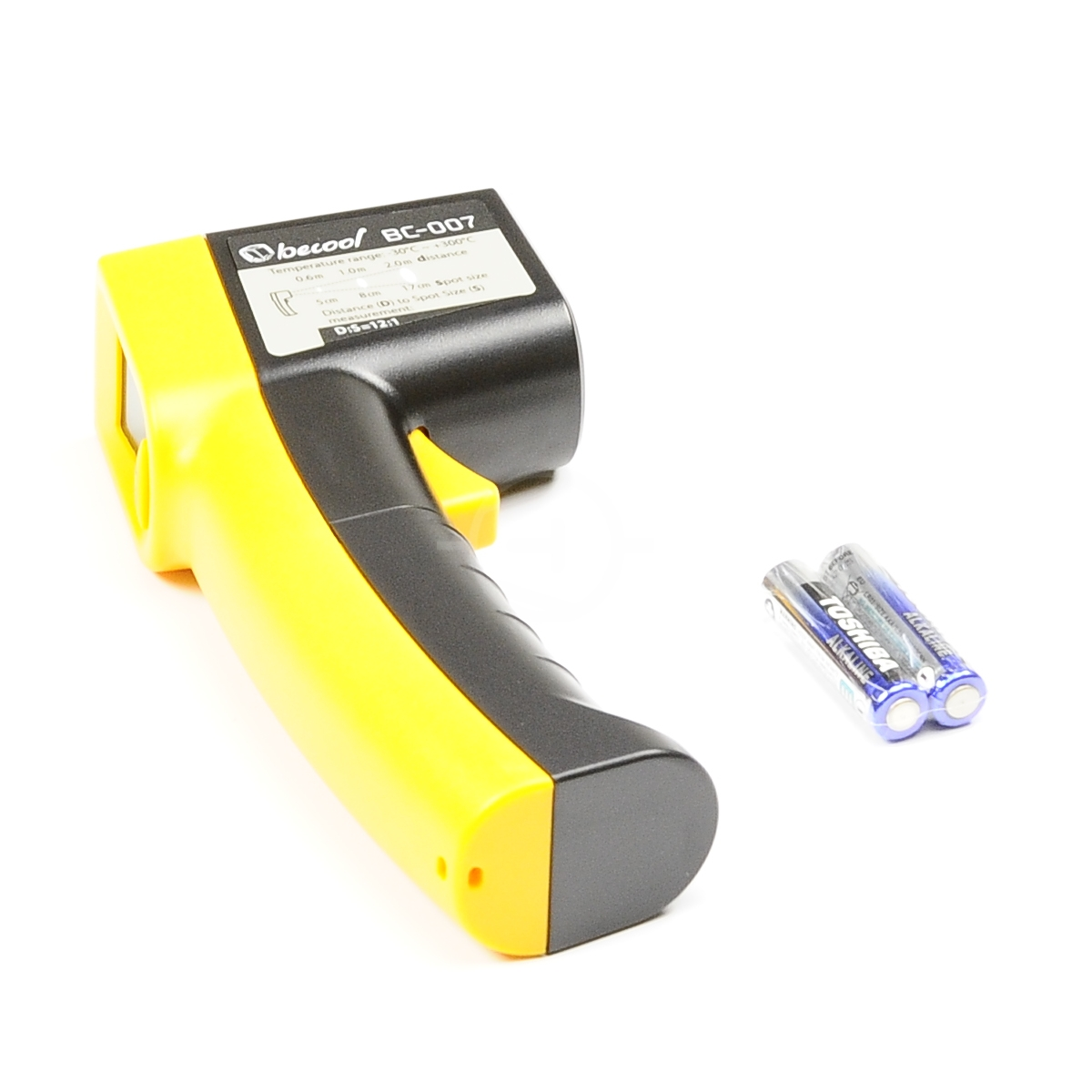 Инфракрасный термометр Becool BC-007 предназначен для измерения температуры твёрдых и сыпучих поверхностей и поверхностей жидкостей.