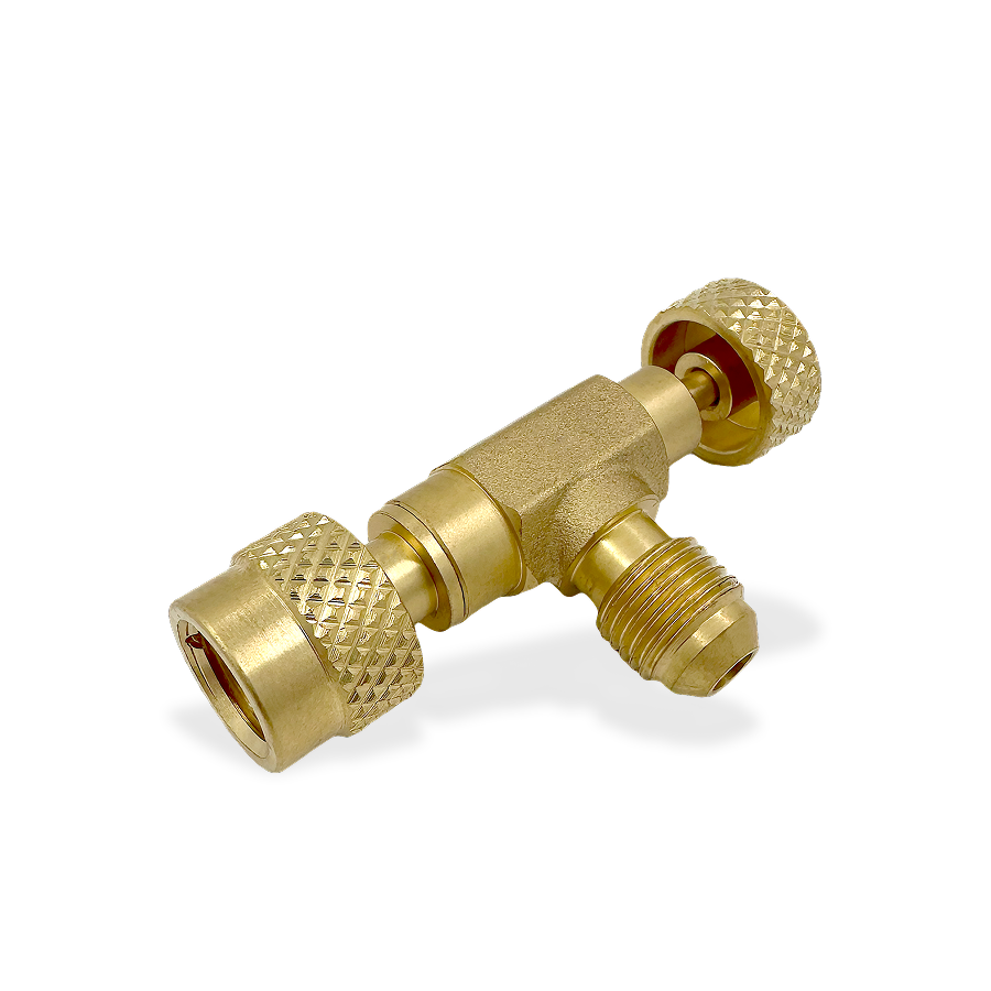 Изготовлен из высококачественной латуни с антикоррозийной обработкой, что обеспечивает устойчивость к агрессивным средам и длительный срок службы. Вентиль оснащен двумя резьбовыми соединениями, что упрощает подключение манометрических коллекторов, вакуумных насосов и заправочных шлангов.