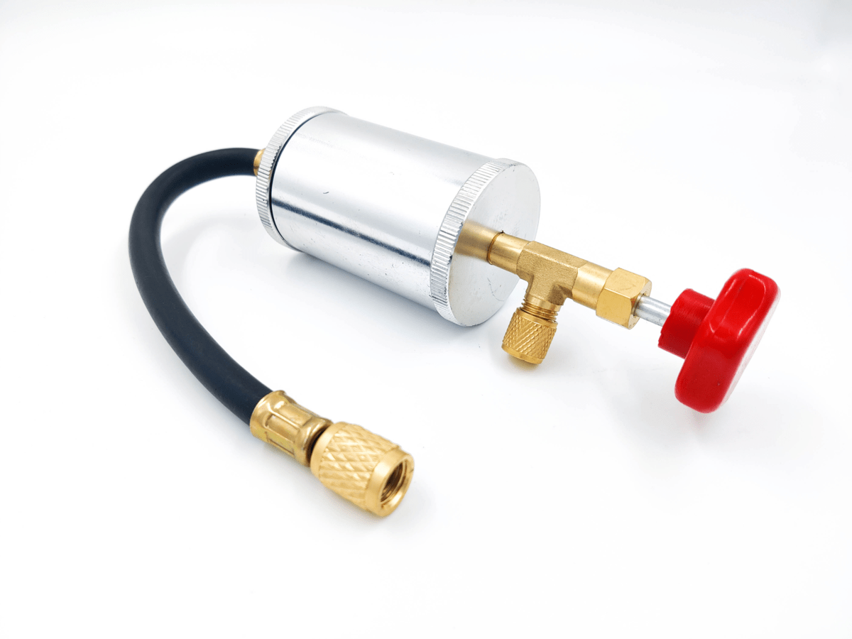 Инжектор масла и красителя служит для заправки нужного количества масла в систему кондиционирования, а также UV красителя. Изготовлен из алюминия, латуни, резины.