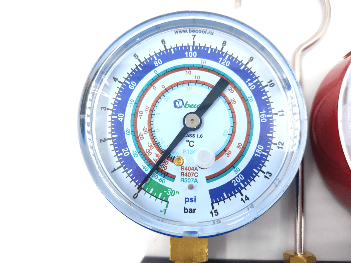 Манометрическая станция Becool BC-PREMIUM M1 предназначена для обслуживания и ремонта бытовых и торговых холодильных и морозильных шкафов и ларей. Манометрическая станция BC-PREMIUM M1 состоит из изготовленного из анодированного алюминиевого сплава двухвентильного корпуса коллектора с двумя шаровыми вентилями, герметично установленным в корпус смотровым стеклом и четырьмя рабочими штуцерами с резьбой М1/4" SAE, герметично закреплённых в корпусе манометра и мановакуумметра с температурными шкалами R134a, R404A, R407C, R507А и трёх шлангов без вентилей с накидными гайками с резьбой F1/4" SAE.