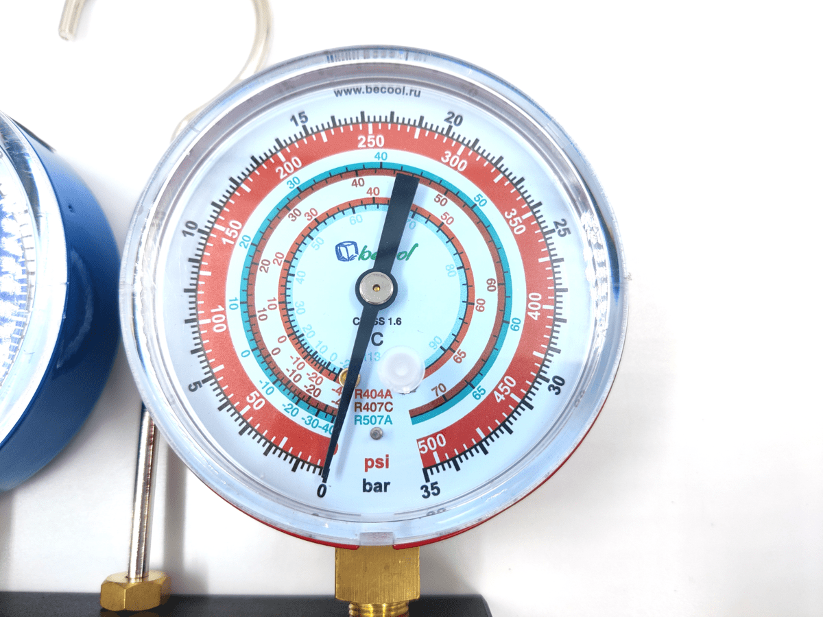 Манометрическая станция для работы с фреонами: R134a, R404A, R407C, R507А; резьба присоединительных штуцеров: M1/4" SAE.