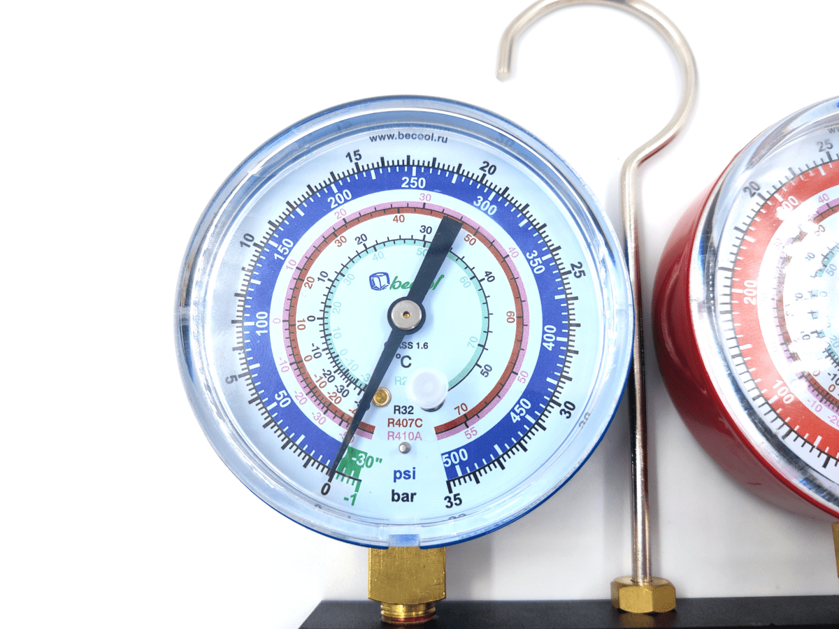 Манометрическая станция Becool BC-PREMIUM M2 предназначена для обслуживания и ремонта кондиционеров, бытовых и торговых холодильных и морозильных камер. Манометрическая станция BC-PREMIUM M2 состоит из изготовленного из анодированного алюминиевого сплава двухвентильного корпуса коллектора с двумя шаровыми вентилями, герметично установленным в корпус смотровым стеклом и четырьмя рабочими штуцерами, герметично закреплённых в корпусе манометра и мановакуумметра с температурными шкалами R22, R32, R407C, R410A и трёх шлангов без вентилей с накидными гайками.