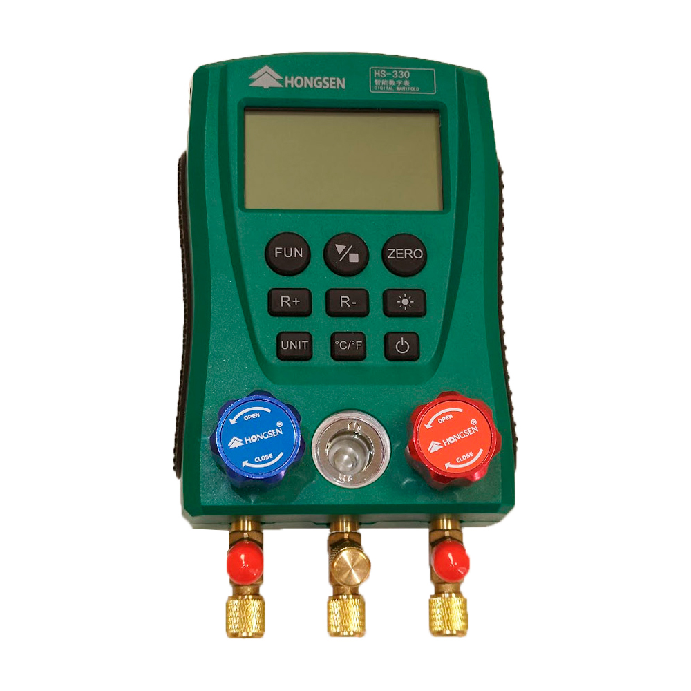 Манометрическая станция представляет собой двухвентильный цифровой манометрический коллектор с металлической диафрагмой и двумя зондами в комплекте. Электронная манометрическая станция HONGSEN HS-330 - применяется для измерения давления в холодильных системах.