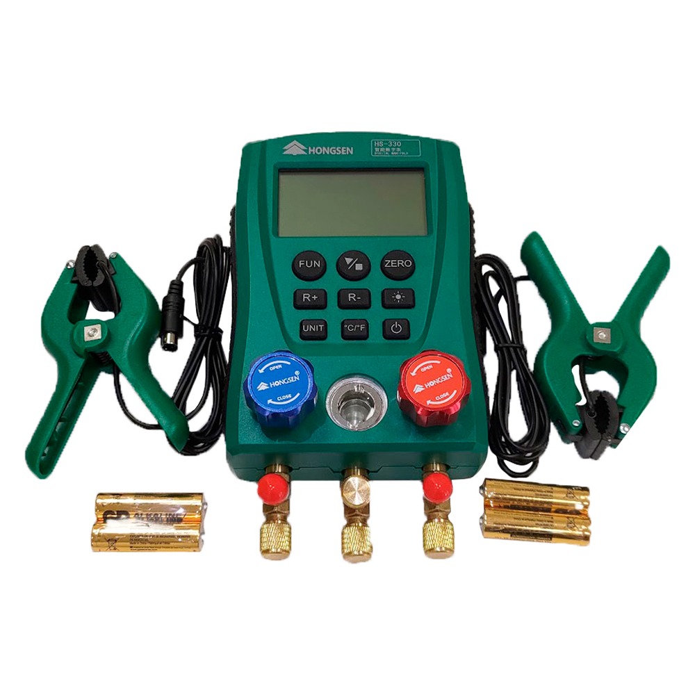 Электронная манометрическая станция HONGSEN HS-330 применяется для измерения давления в холодильных системах. Манометрическая станция представляет собой двухвентильный цифровой манометрический коллектор с металлической диафрагмой и двумя зондами в комплекте.