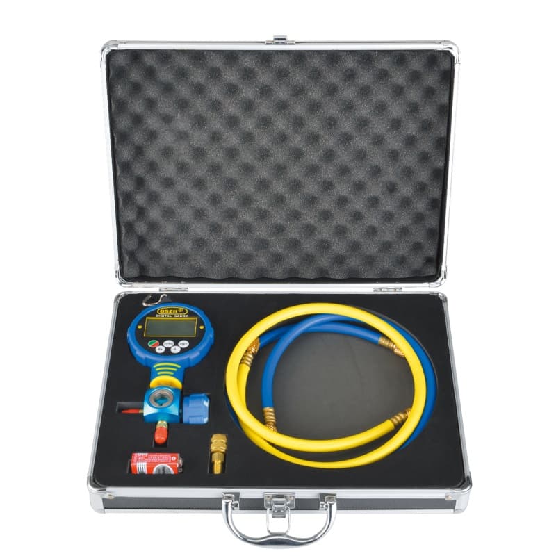 Электронный одновентильный коллектор DSZH WК-6881L со смотровым стеклом, двумя шлангами, адаптером AD-89 в алюминиевом кейсе.