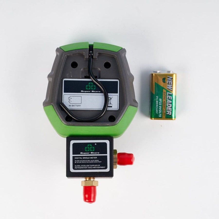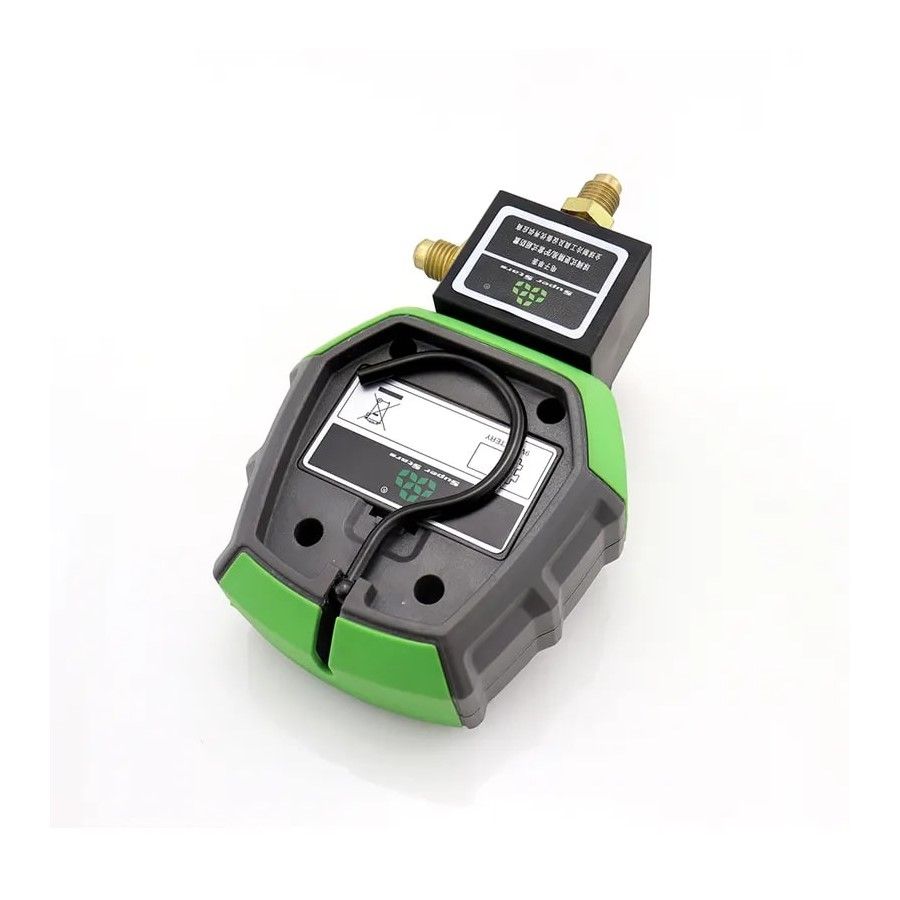 Одновентильный манометрический электронный коллектор Super Stars ST-B168DH, измеряет вакуум, давление и температуру кипения. Складывающийся крючок. Шаровой вентиль. Противоударный корпус.