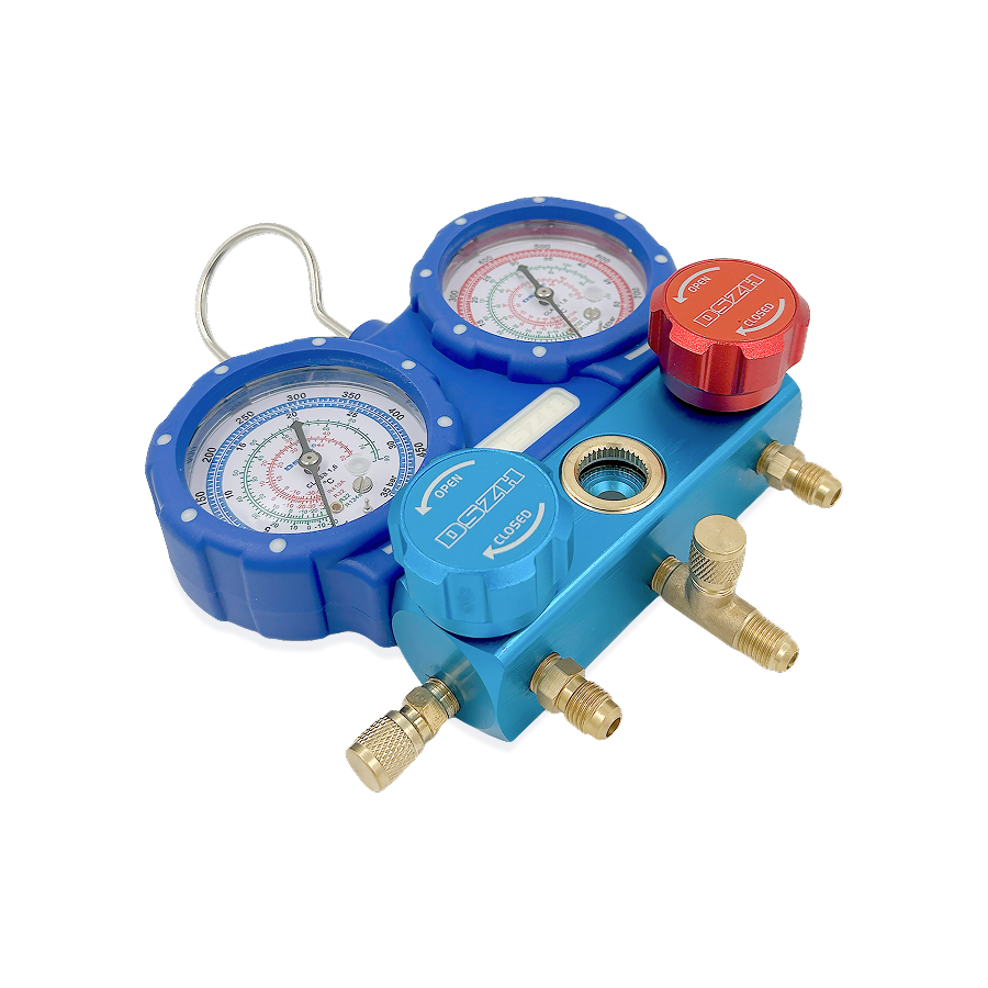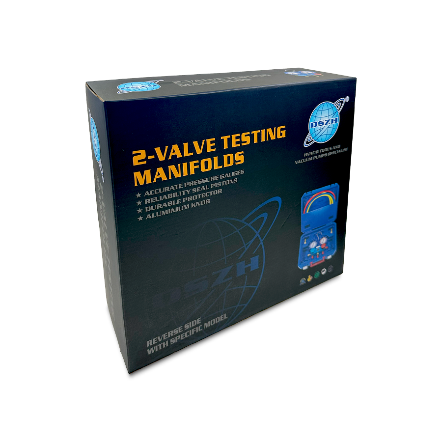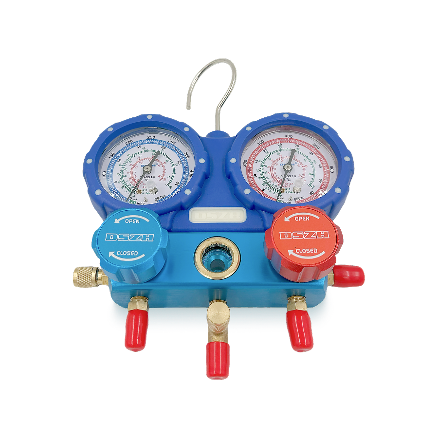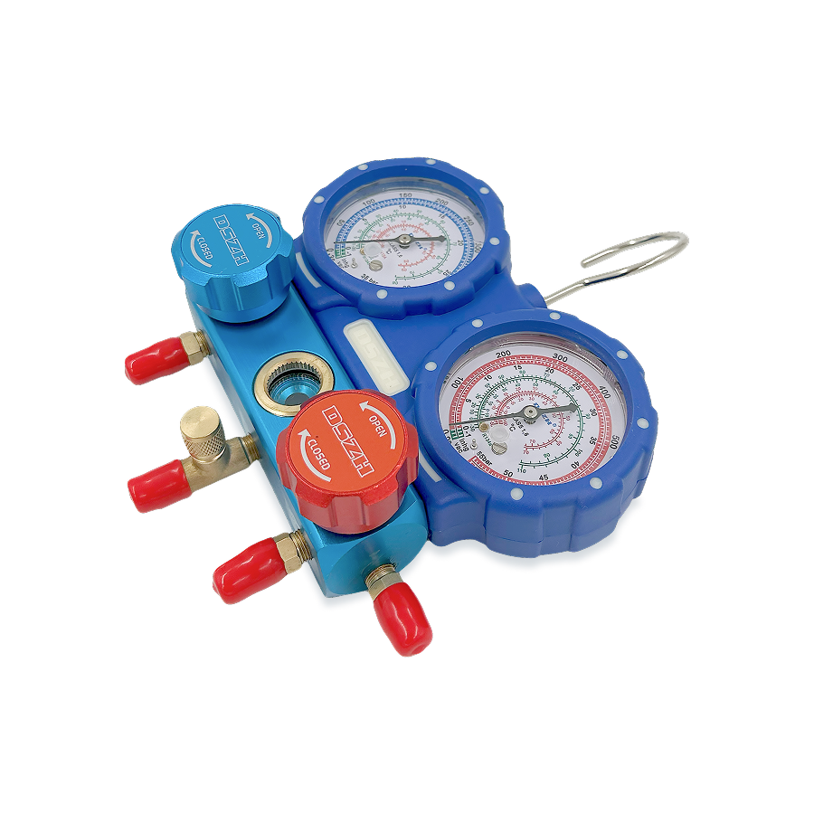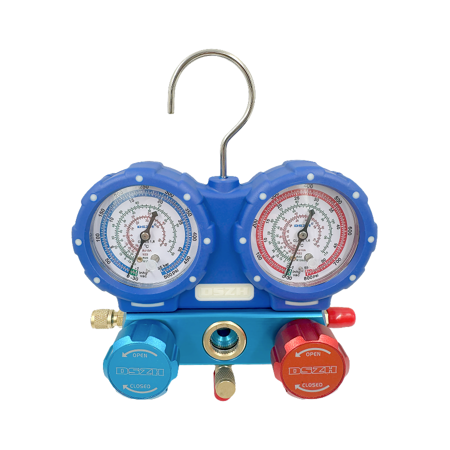 Манометрическая 2-х вентильная станция DSZH WK-P3603S - инструмент для определения давления в холодильном контуре. Помогает определить: вакуум, температуру кипения фреона, давление разных фреонов. Универсален под все виды наиболее используемых фреонов.