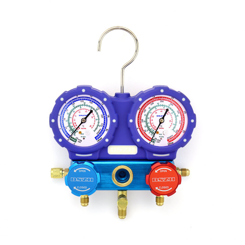 Манометрическая станция DSZH WK-P6002B - инструмент для определения давления в холодильном контуре. Помогает определить: вакуум, температуру кипения фреона, давление разных фреонов.
