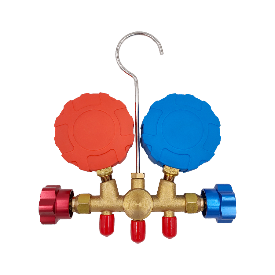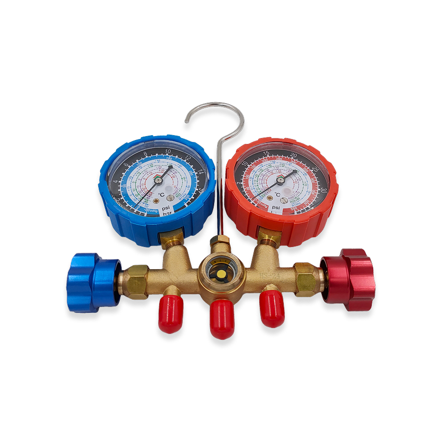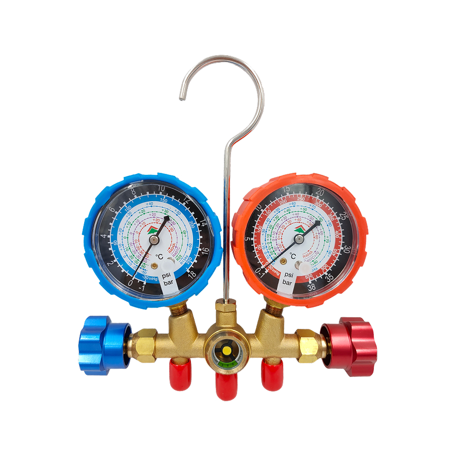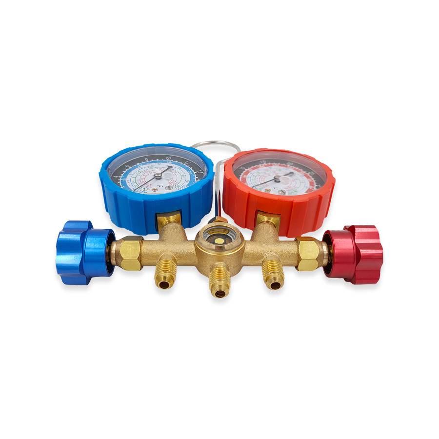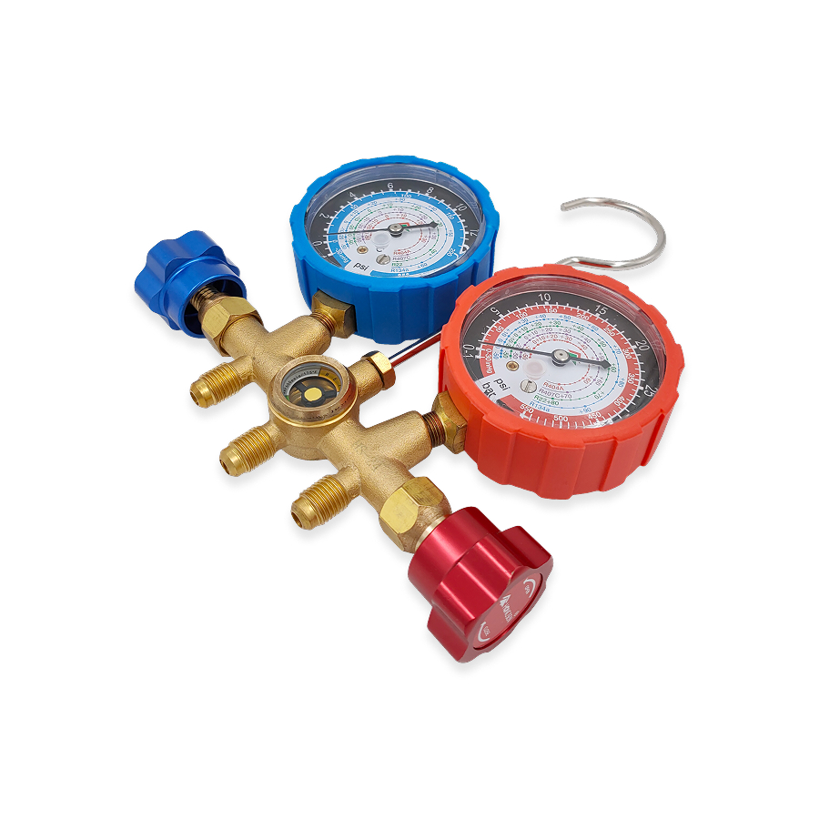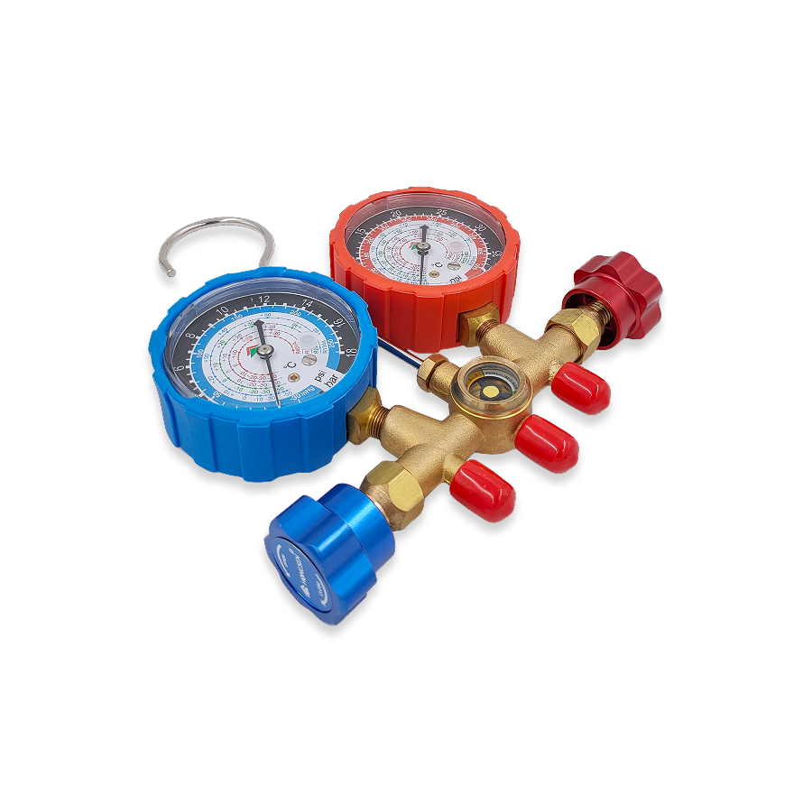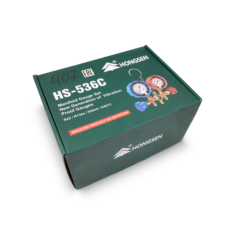 Манометрическая 2х-вентильная станция HONGSEN HS-536C со смотровым стеклом - инструмент для определения давления в холодильном контуре. Помогает определить: вакуум, температуру кипения фреона, давление разных фреонов.