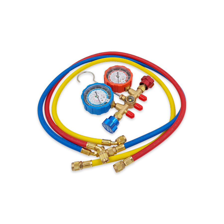 Для работы с фреонами: R22, R134, R404, R407. Латунный корпус. Металлические вставки в вентилях позволяют увеличить срок их службы.