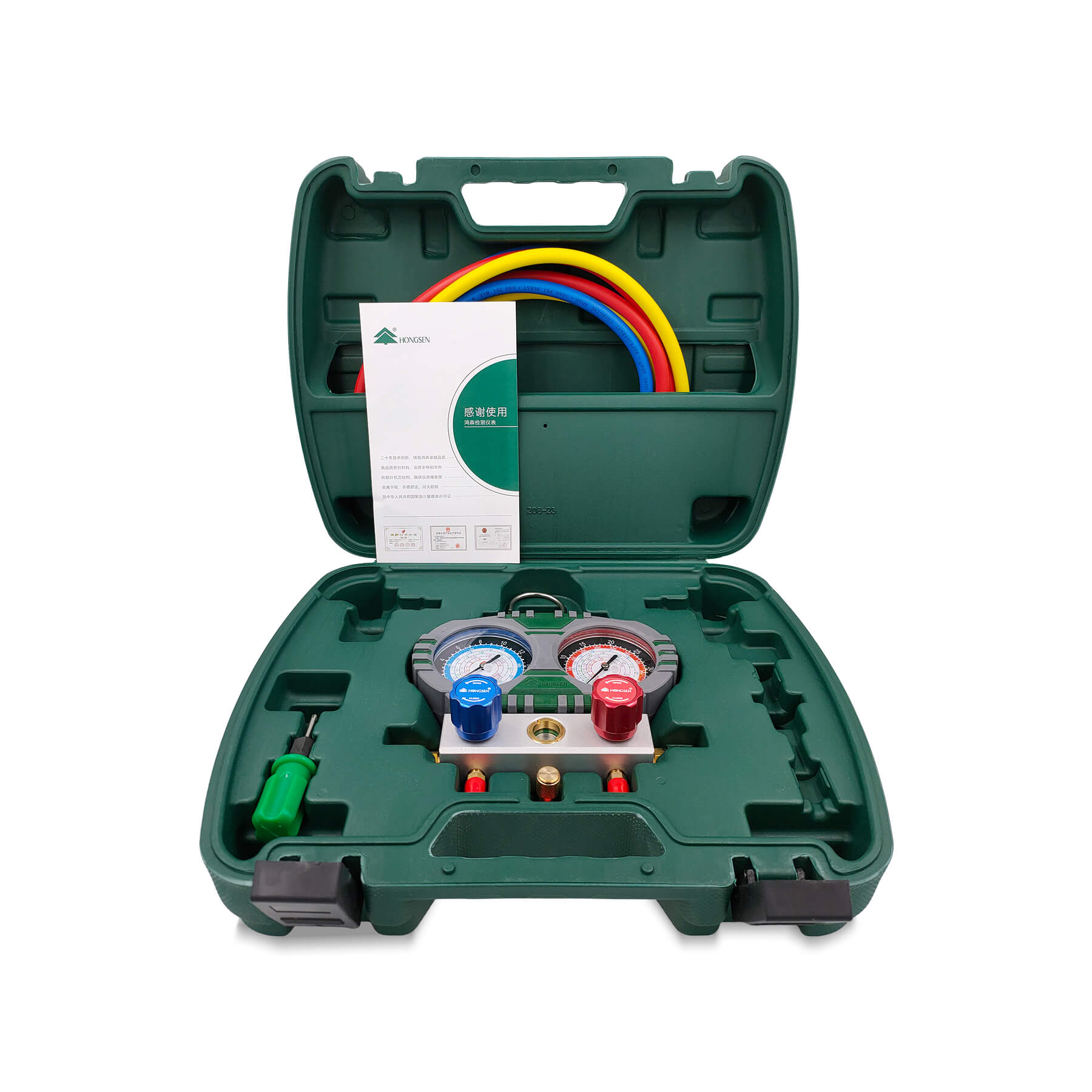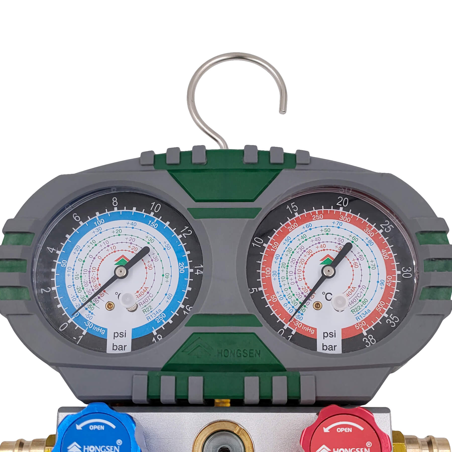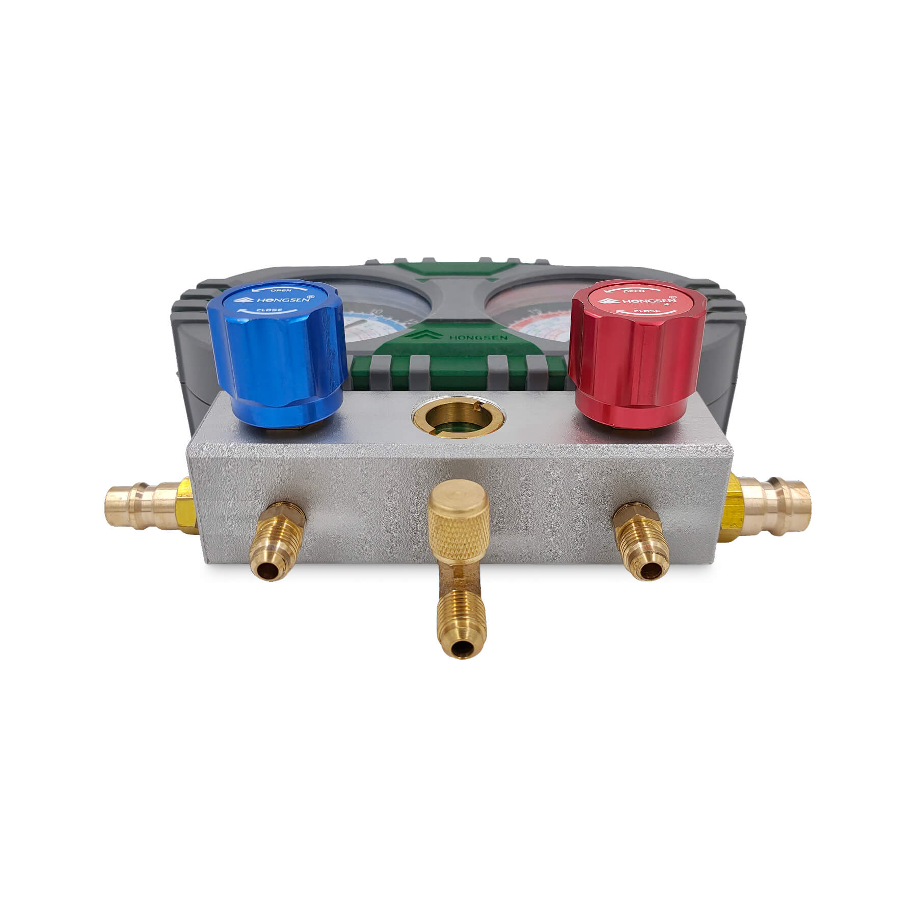 Манометрическая 2х-вентильная станция HONGSEN HS-S60-101A - инструмент для определения давления в холодильном контуре. Помогает определить: вакуум, температуру кипения фреона, давление разных фреонов.