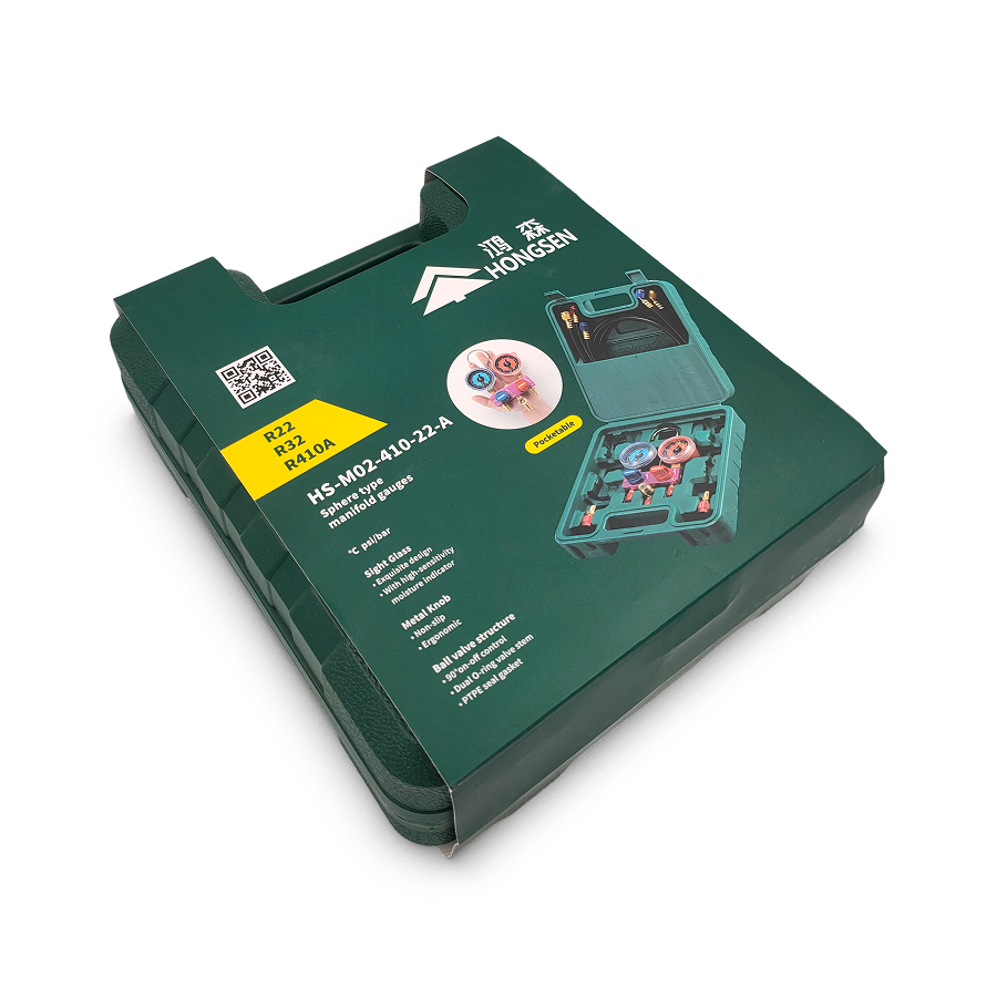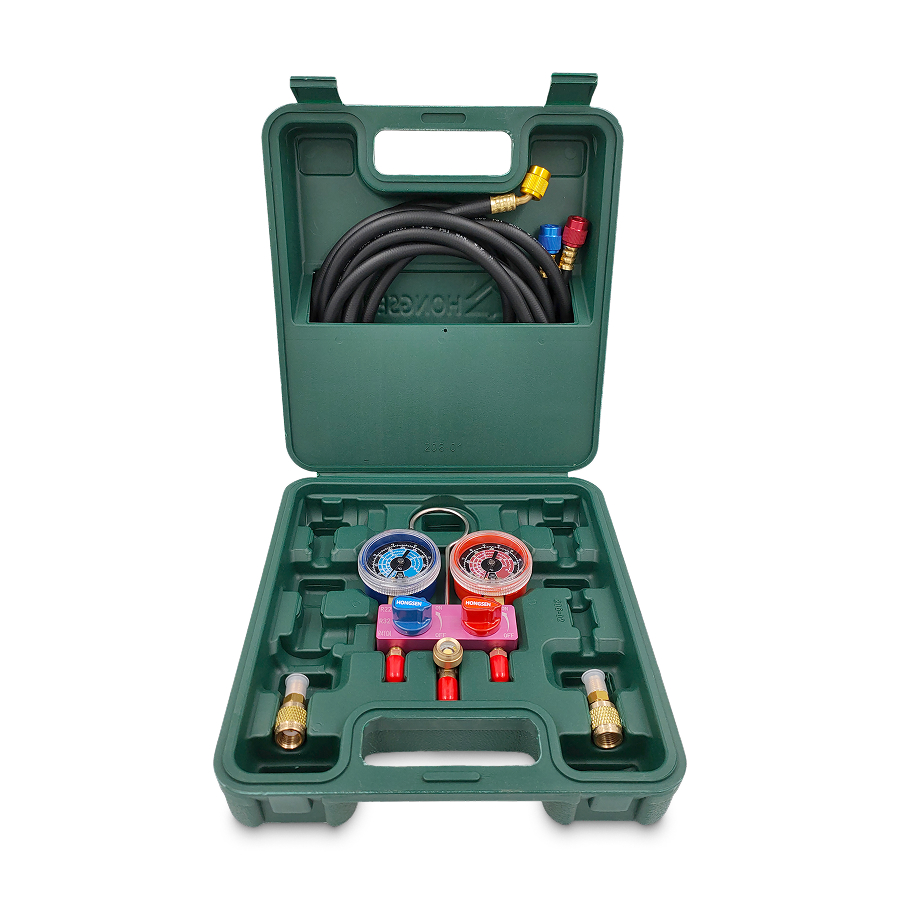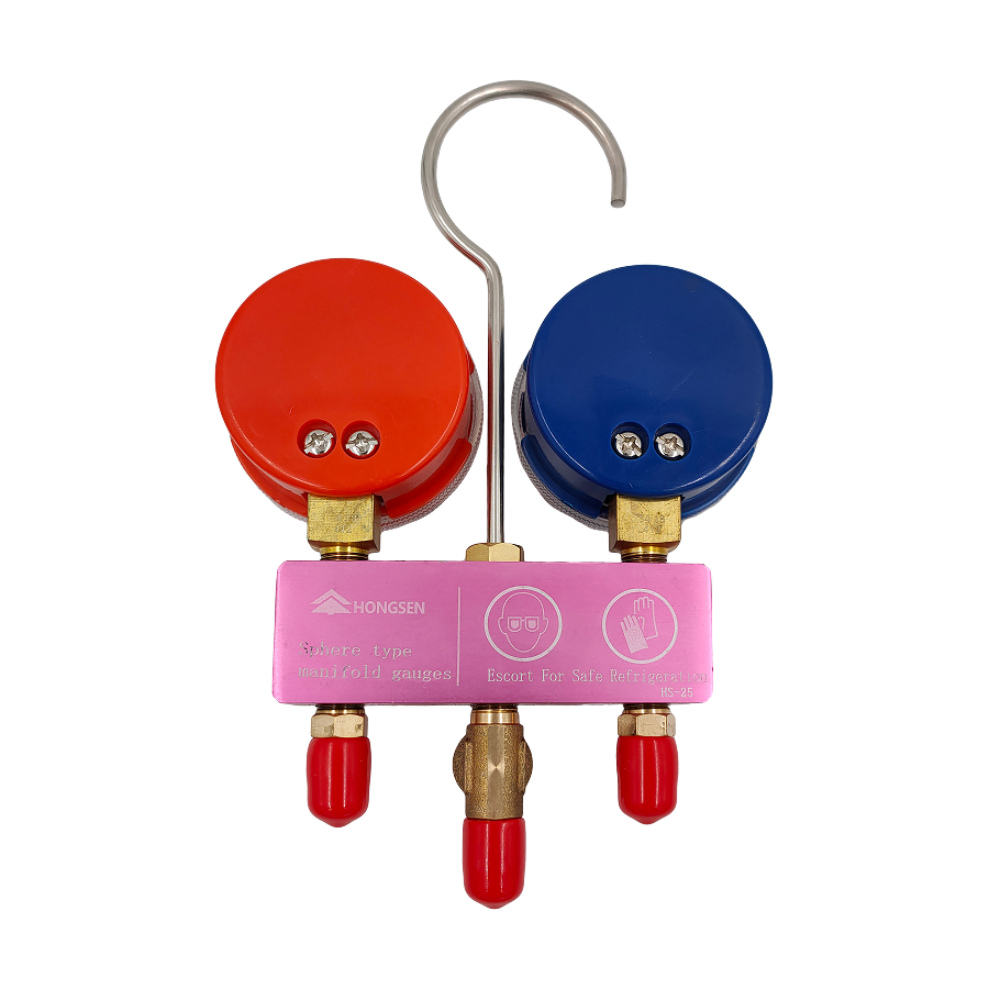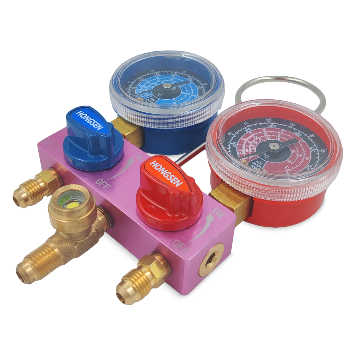 Манометрический коллектор HONGSEN HS-M02-410-A 2х-вентильный - применяется для измерения низкого давления в холодильных системах и температуры трубопровода, работающих на хладоне.
