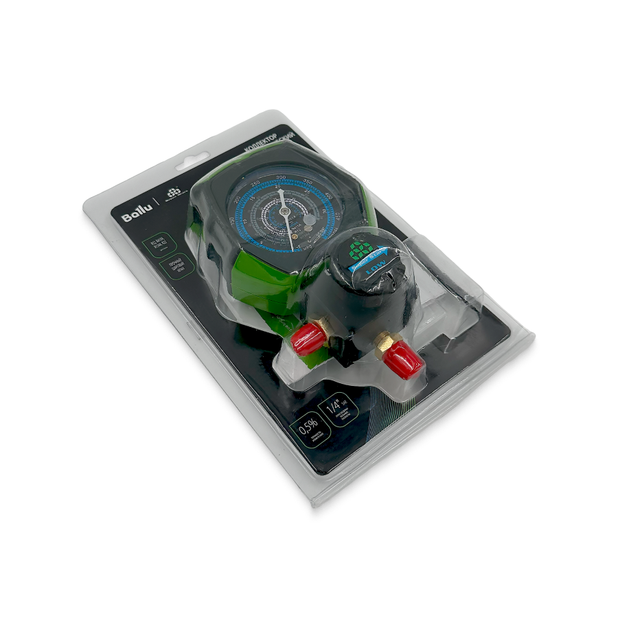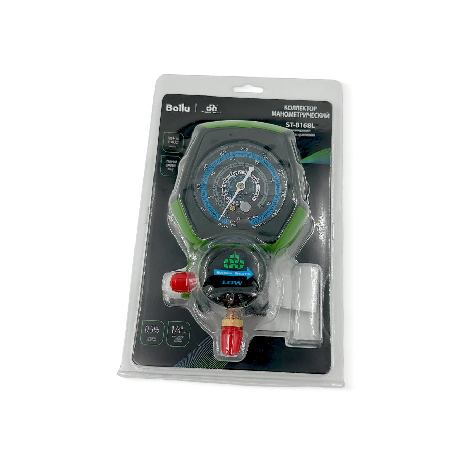 Манометрический коллектор Ballu Super Stars ST-B168L 1 вентильный, с мановакуумметром — применяется для измерения низкого давления в холодильных системах и температуры трубопровода, работающих на хладоне.