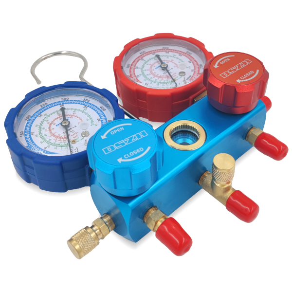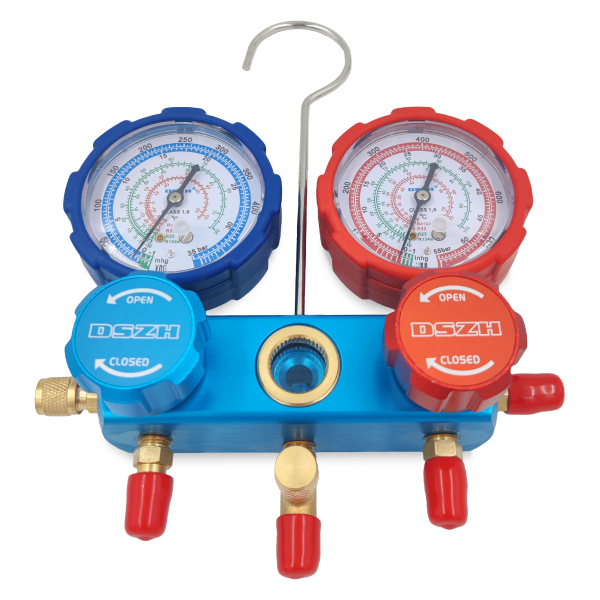 Манометрический 2-х вентильный коллектор DSZH CT-136G - инструмент для определения давления в холодильном контуре. Помогает определить: вакуум, температуру кипения фреона, давление разных фреонов. Универсален под все виды наиболее используемых фреонов.