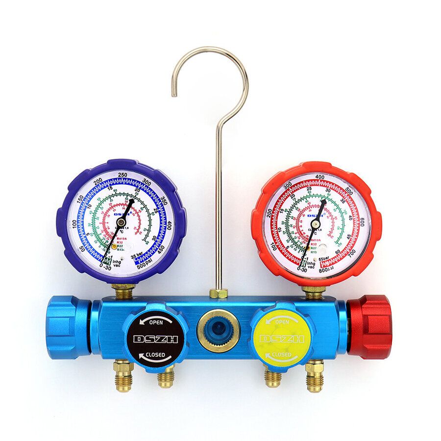 Манометрический 4-х вентильный коллектор Value DSZH CT-436G - инструмент для определения давления в холодильном контуре. Помогает определить: вакуум, температуру кипения фреона, давление разных фреонов. Универсален под все виды наиболее используемых фреонов.