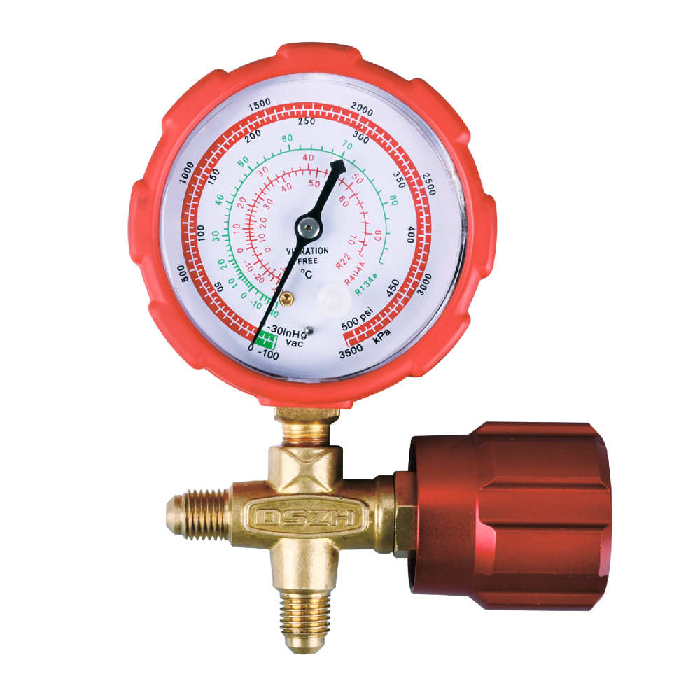 Манометрический 1-вентильный коллектор DSZH WK-466H - инструмент для определения давления в холодильном контуре. Помогает определить: вакуум, температуру кипения фреона, давление разных фреонов.