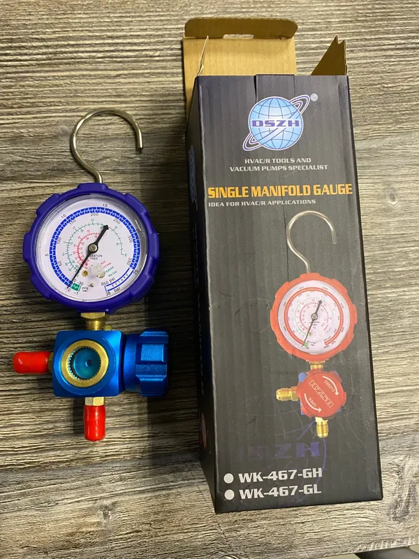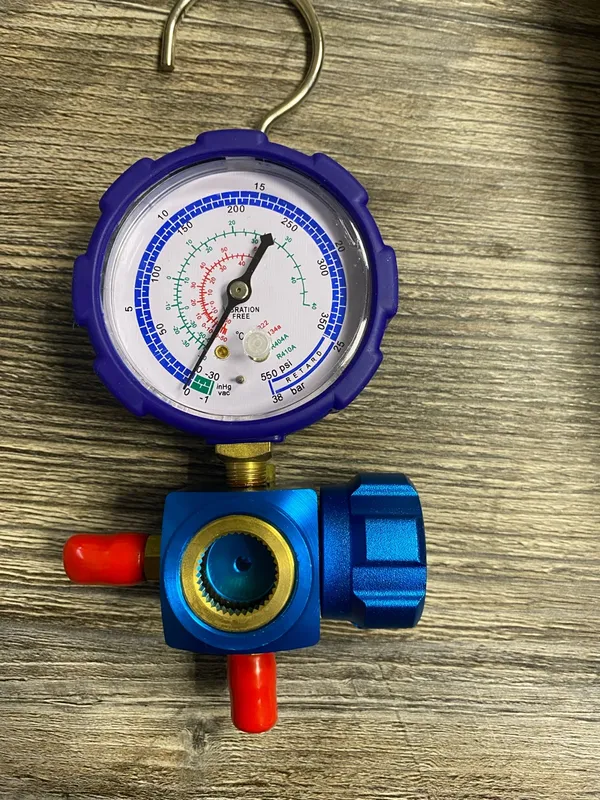 Температурные шкала на манометре для фреона: R22/134/404/410.