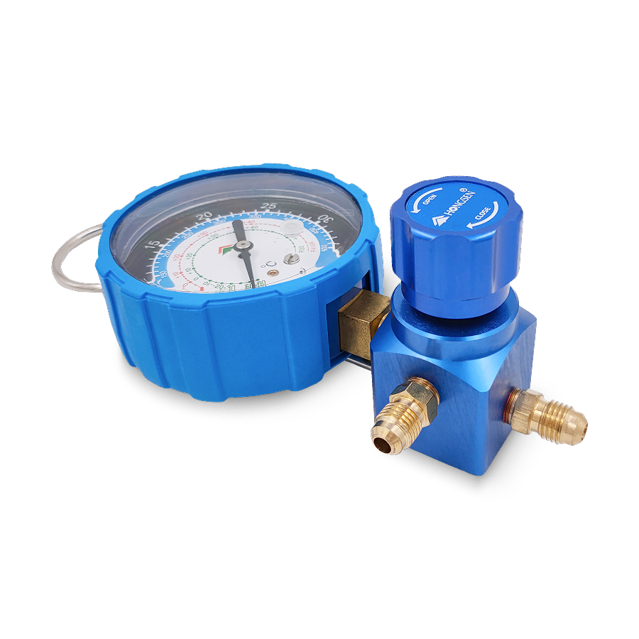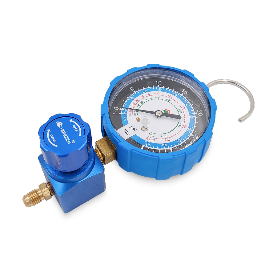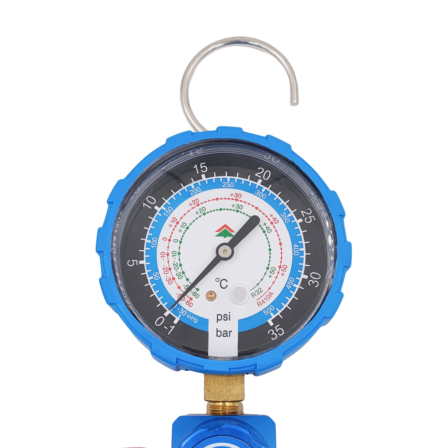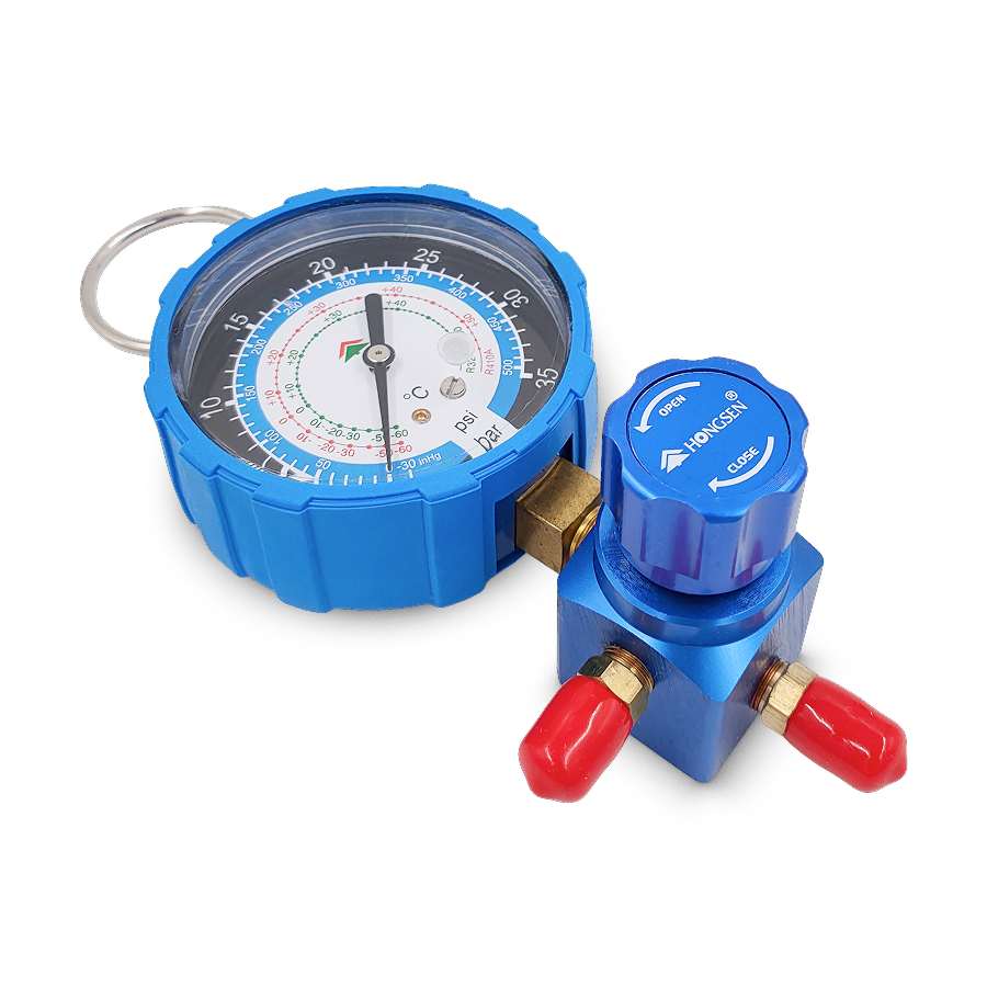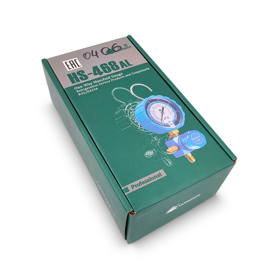 Манометрический 1-вентильный коллектор низкого давления HONGSEN HS-468AL - инструмент для определения давления в холодильном контуре. Помогает определить: вакуум, температуру кипения фреона, давление разных фреонов.