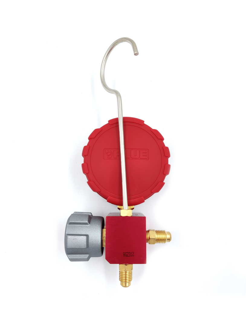 Универсальный манометрический 1 вентильный коллектор Value VMG-1-S-H, с манометром высокого давления 68 мм в защитном кожухе. Шкалы фреонов: R22, R134A, R407C, R410A.
