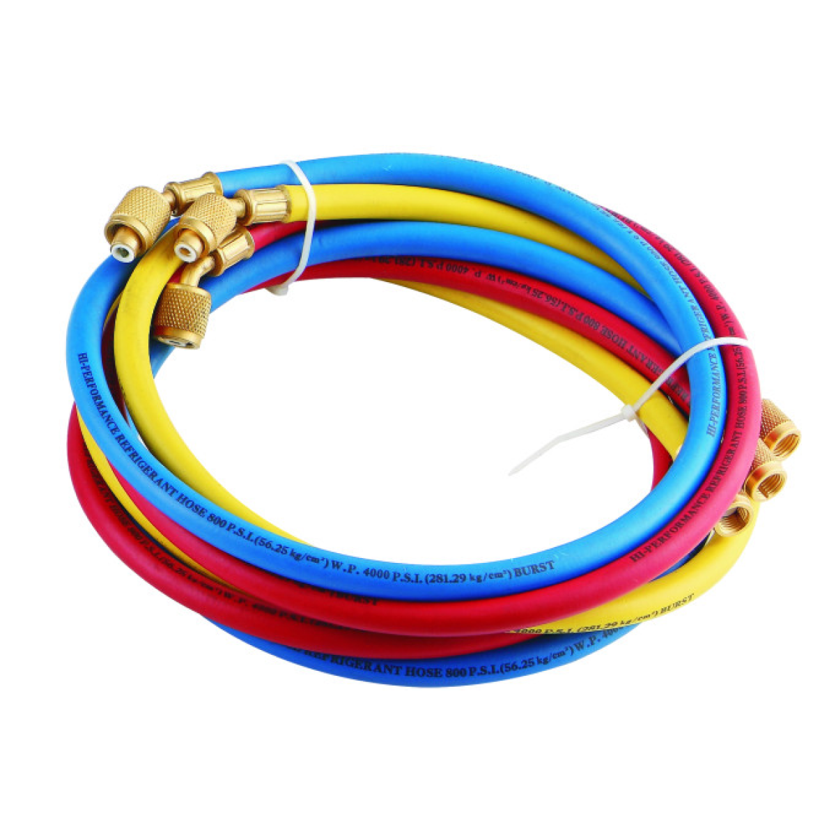 В комплект входят зарядные шланги 1.2 м (желтый, синий, красный) и и быстросъемные муфты 1/4" SAE.
