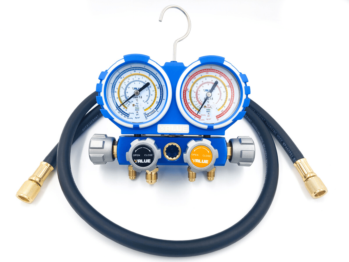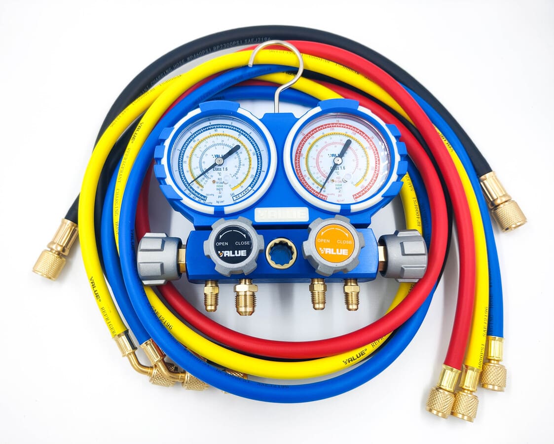Манометрический 4-х вентильный коллектор Value VMG-4-R22 (80 мм): cерия манометрических коллекторов VMG отличается высокой надежностью и качеством используемых материалов. Корпус манометров выполнен из алюминиевого сплава и покрыт резиной для защиты от повреждений. Металлические вставки в вентилях позволяет увеличить срок их службы.