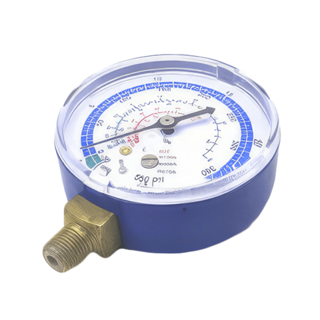 Корпус мановакуумметра DSZH WK-6808L изготовлен из окрашенной методом порошковой окраски в синий цвет стали. На шкалу мановакуумметра нанесены температурные шкалы R22, R134A, R404А, R410A, имеется юстировочный винт измерительного механизма.