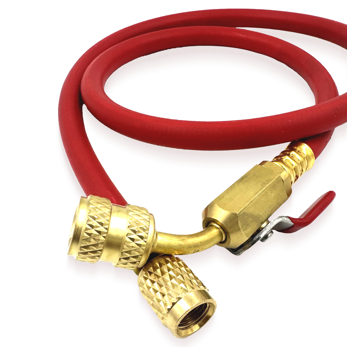 Заправочный шланг 0.9 метра с вентилем, для заправки и вакуумирования кондиционеров. Цвет на выбор: синий, красный, желтый.