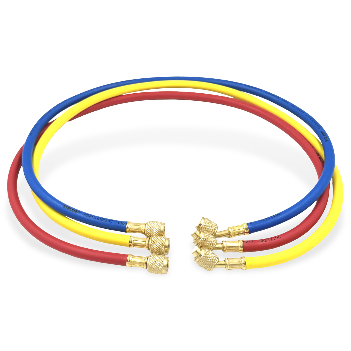 Комплект состоящий из 3-х заправочных шлангов Value (0.9 м) для заправки и вакуумирования кондиционеров. Шланги подсоединяются к вакуумным насосам, баллонам, манометрическим коллекторам. Давление до 34 Bar. Для работы с фреонами R-12, R22, R134, R404A, R407C, R507.
