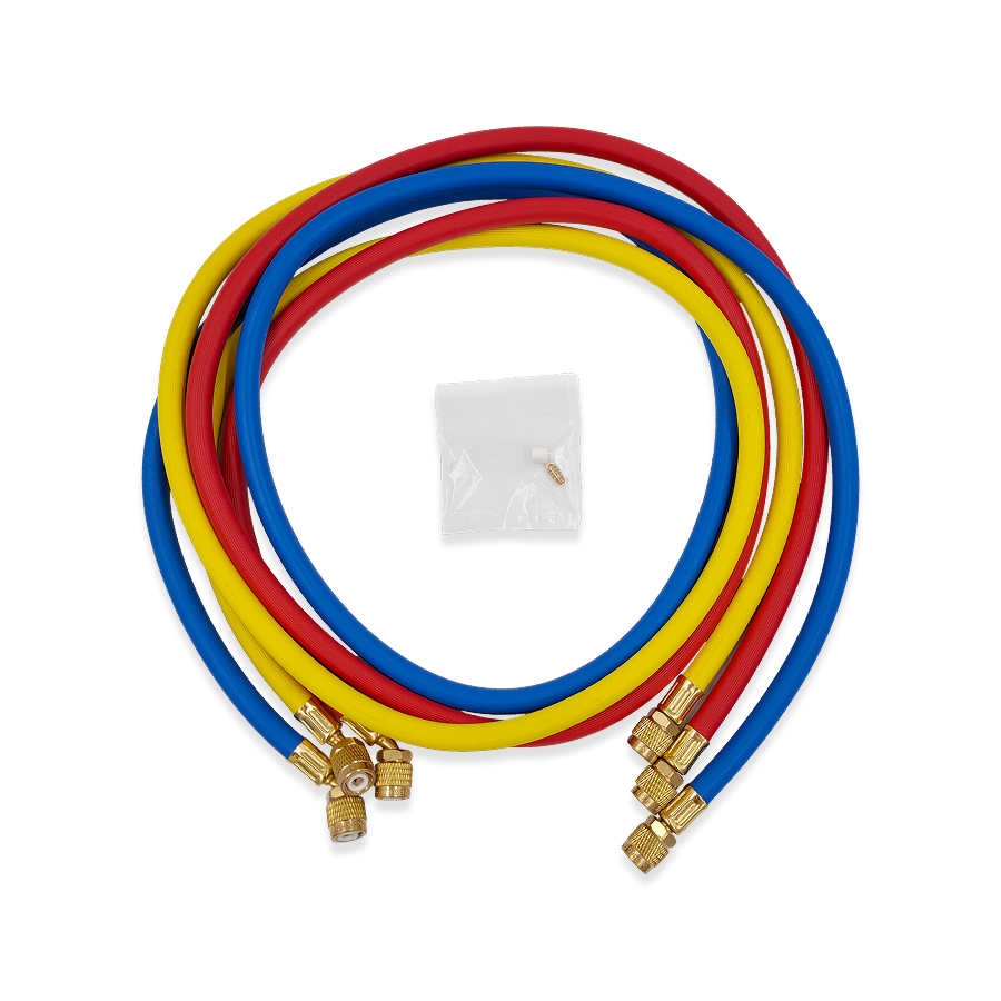 Комплект состоящий из 3-х заправочных шлангов по 1.5 м для заправки и вакуумирования кондиционеров.